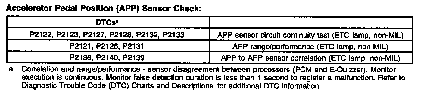 Accelerator Pedal Position (APP) Sensor Check: