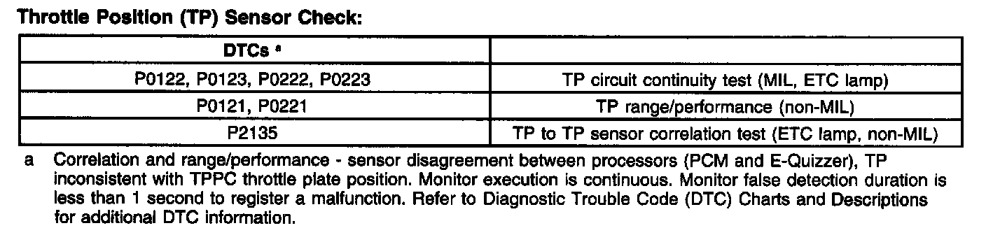 Throttle Position (TP) Sensor Check: