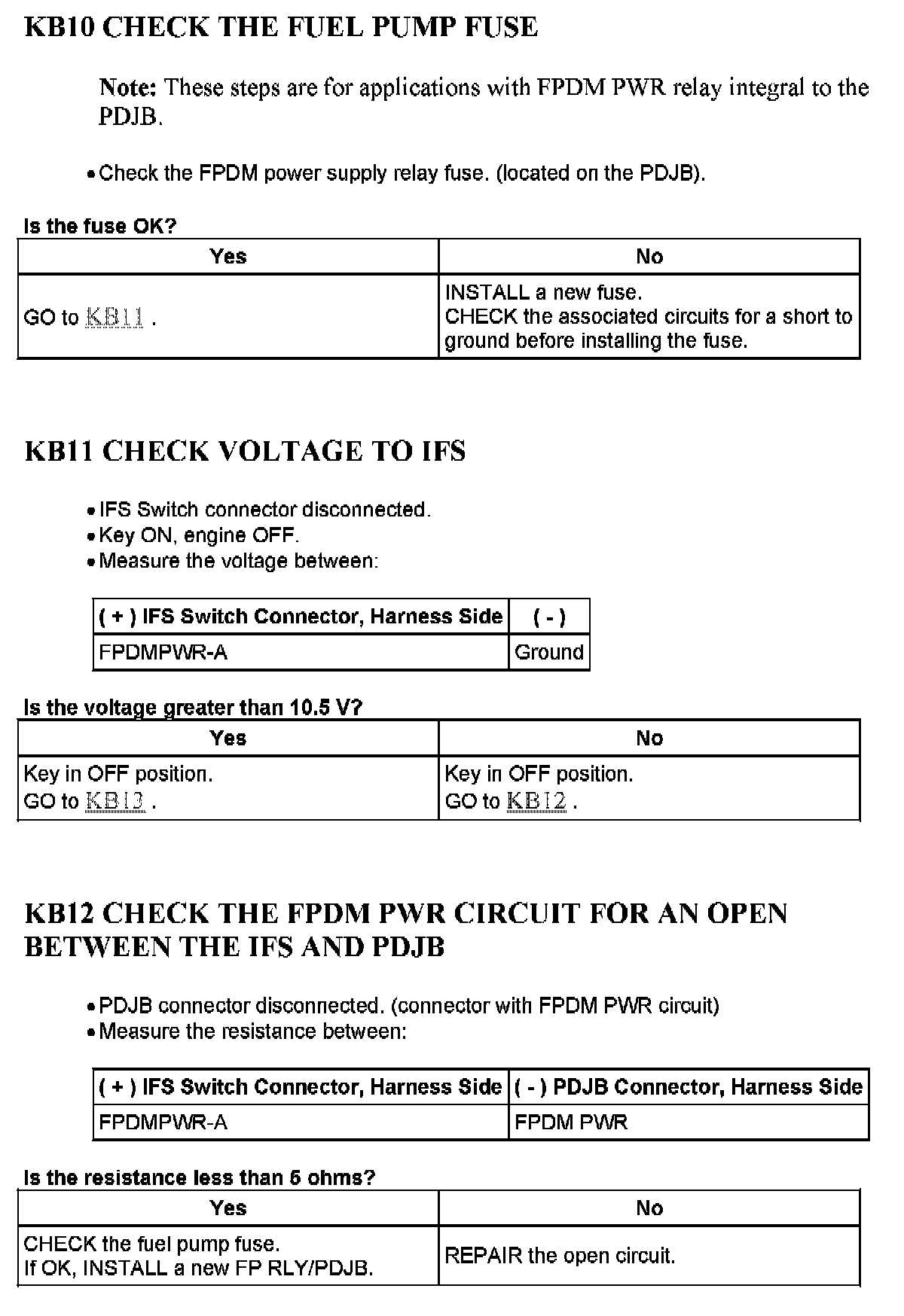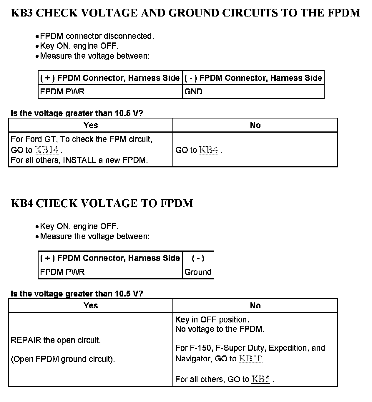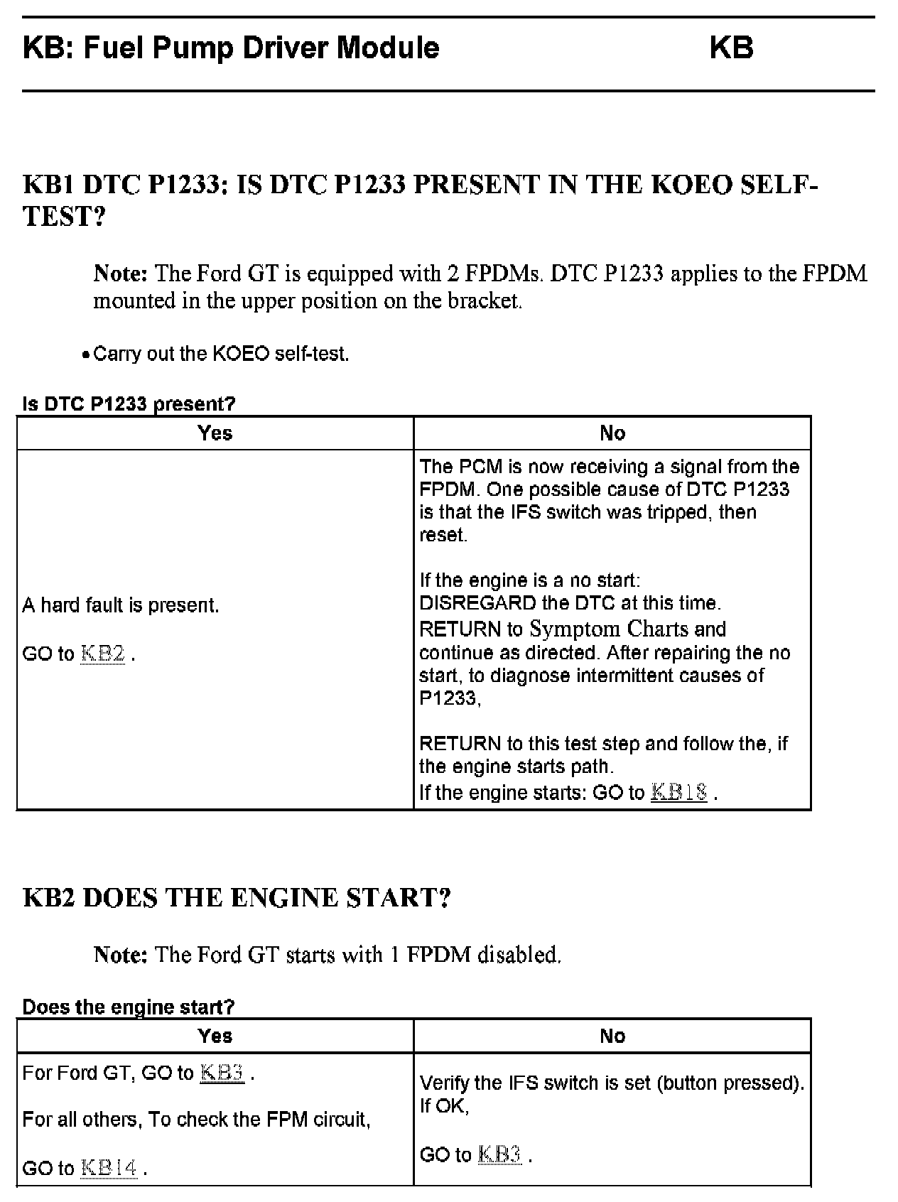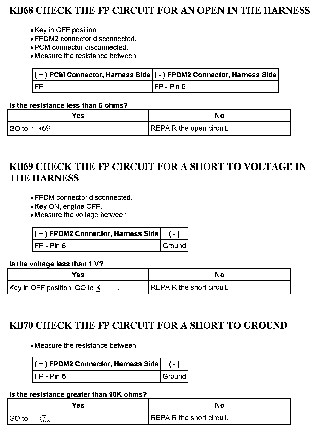 Home >> Ford >> 2005 >> Focus L4-2.3L VIN Z >> Repair and Diagnosis >> Powertrain Management >> Computers and Control Systems >> Testing and Inspection >> Pinpoint Tests >> Tests KB: Fuel Pump Driver Module