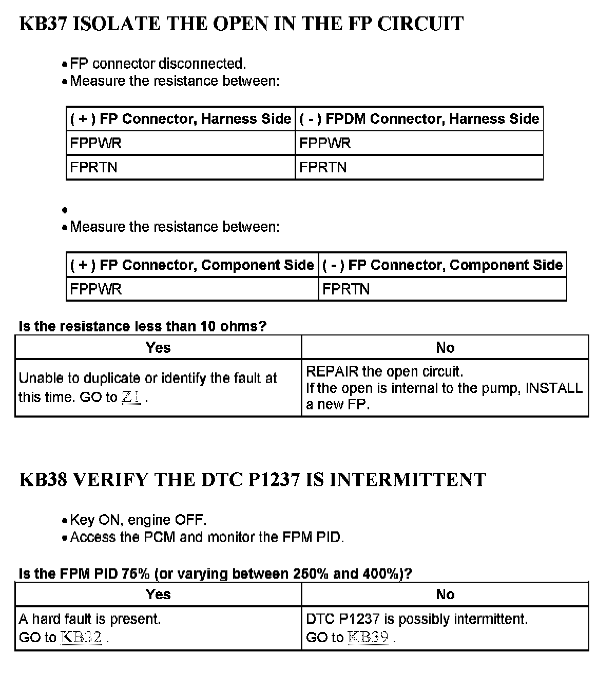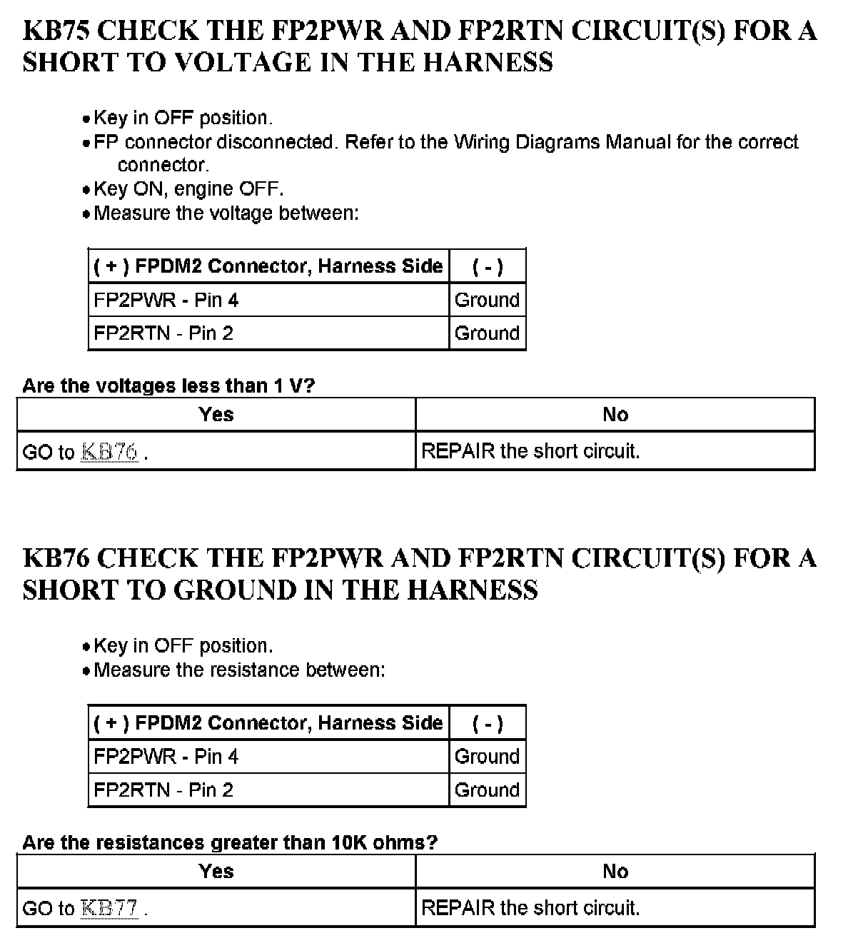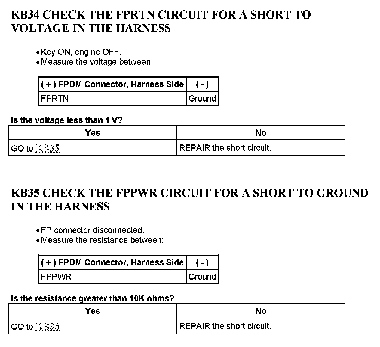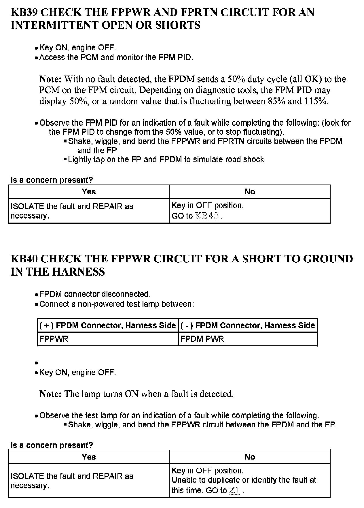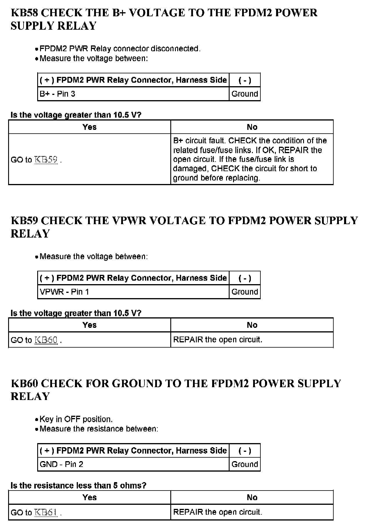 Home >> Ford >> 2005 >> Focus L4-2.3L VIN Z >> Repair and Diagnosis >> Powertrain Management >> Computers and Control Systems >> Testing and Inspection >> Pinpoint Tests >> Tests KB: Fuel Pump Driver Module