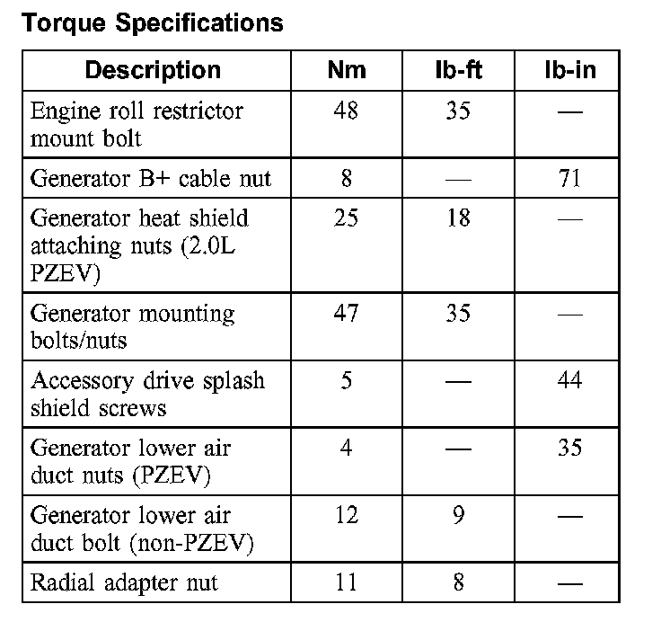 Torque Specifications: