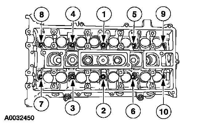 Stage 1: Tighten the camshaft bearing bolt caps one turn at a time until tight.