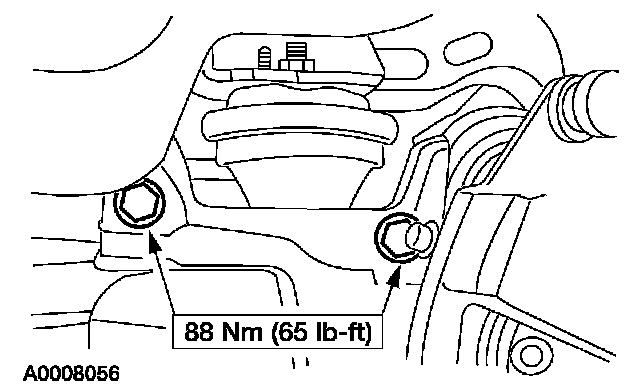 17. Remove the transmission insulator support bracket bolts from the frame.