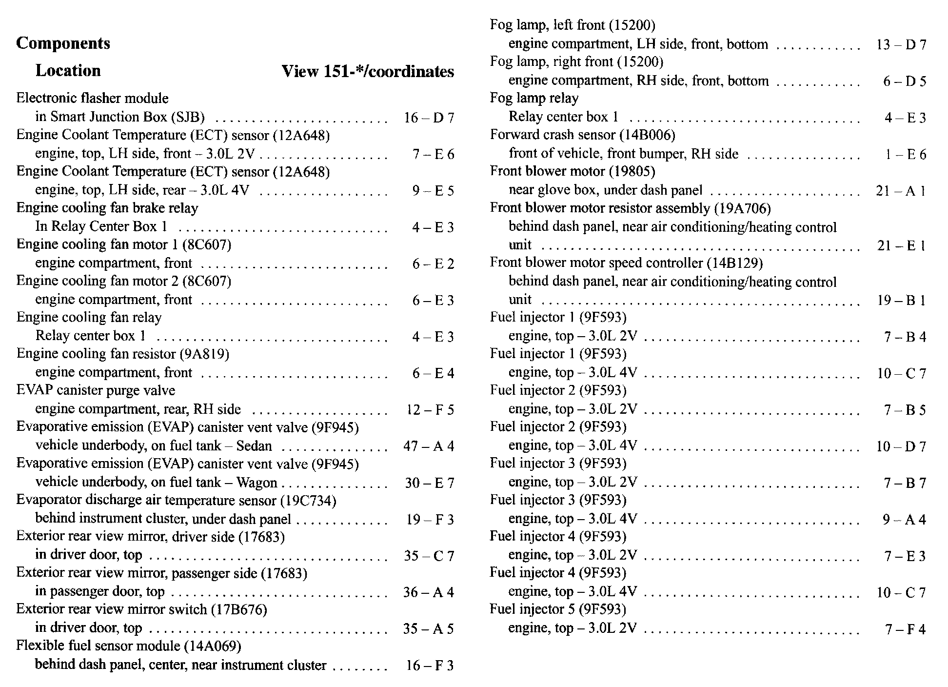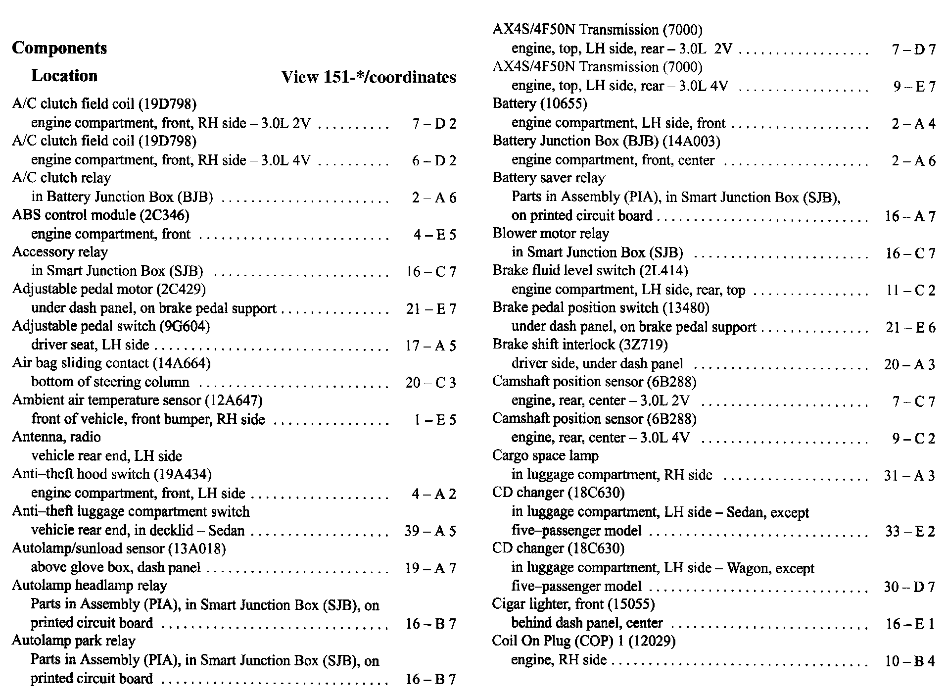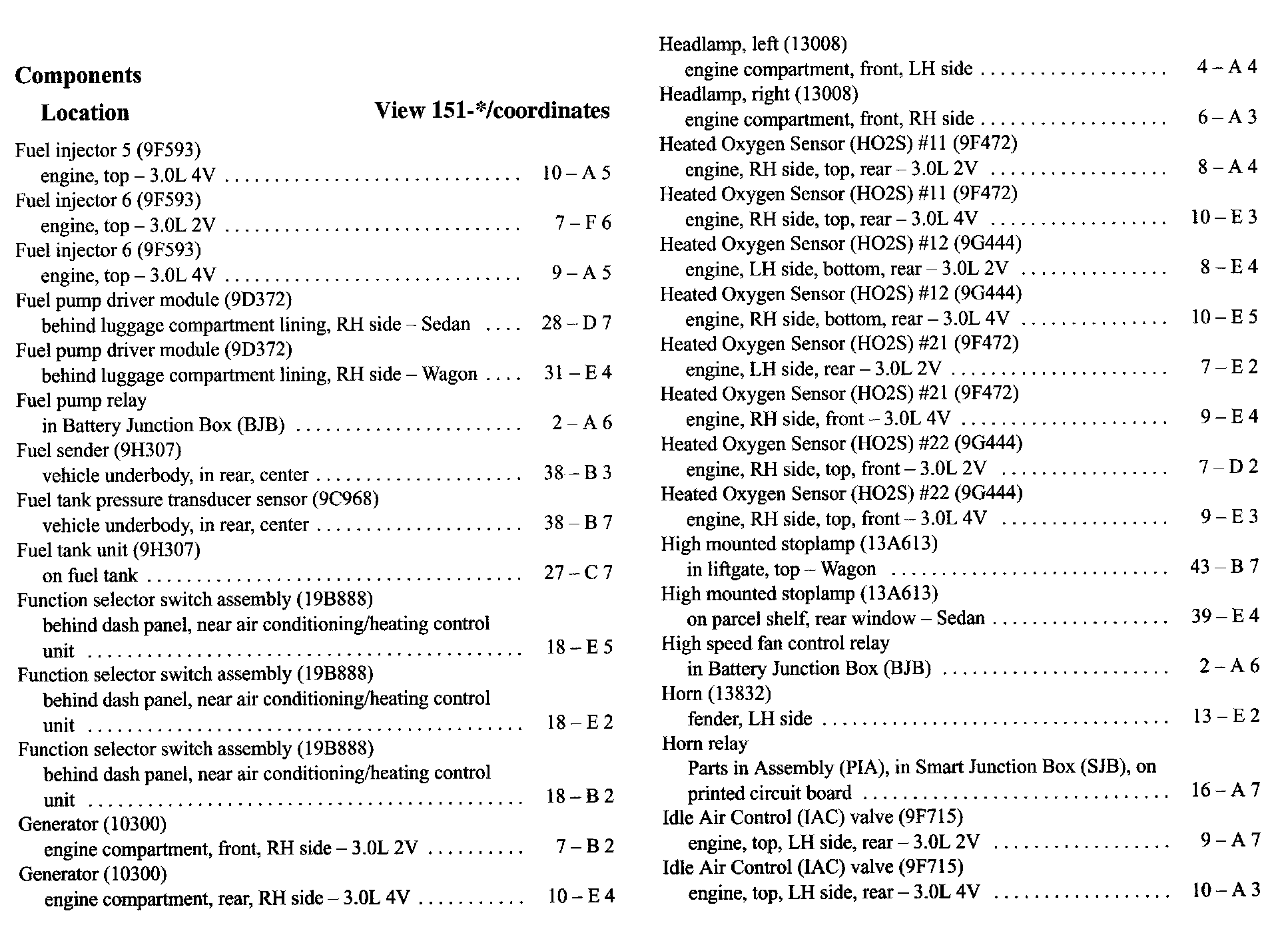 Home >> Ford >> 2005 >> Taurus V6-3.0L VIN U >> Repair and Diagnosis >> Diagrams >> Components >> Component Location Index