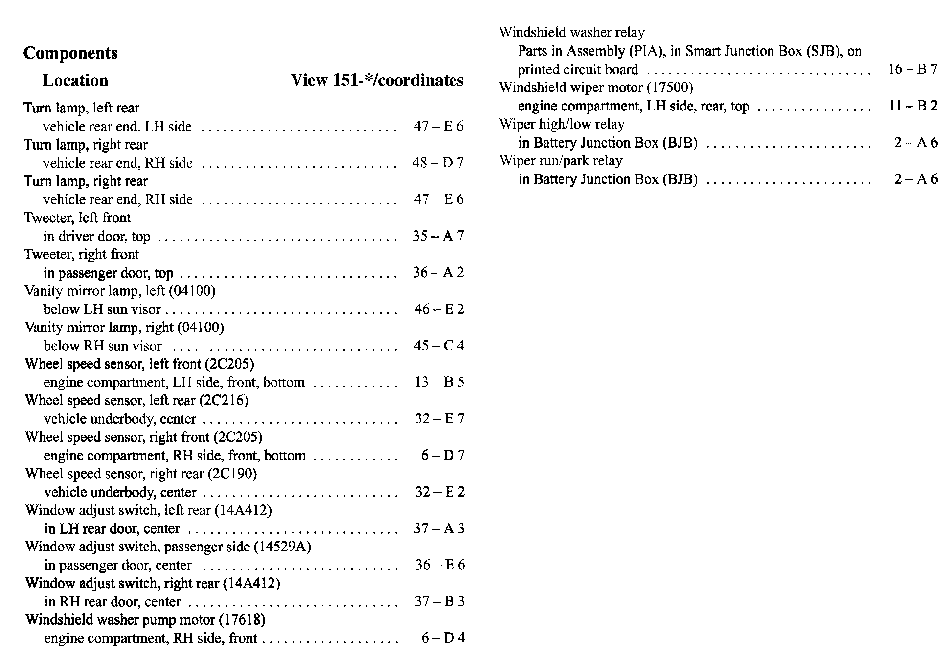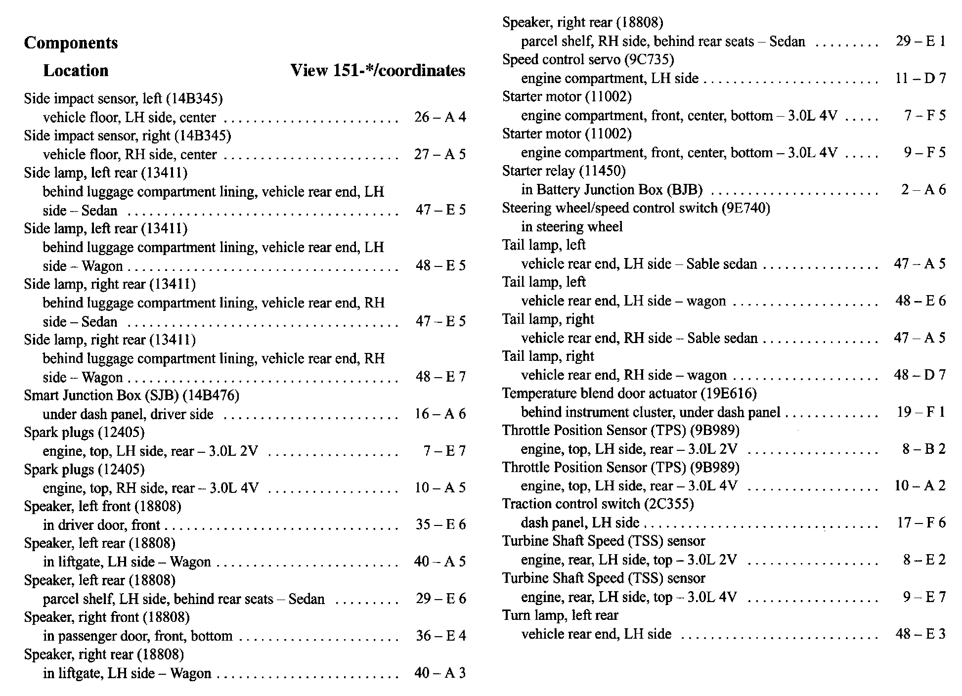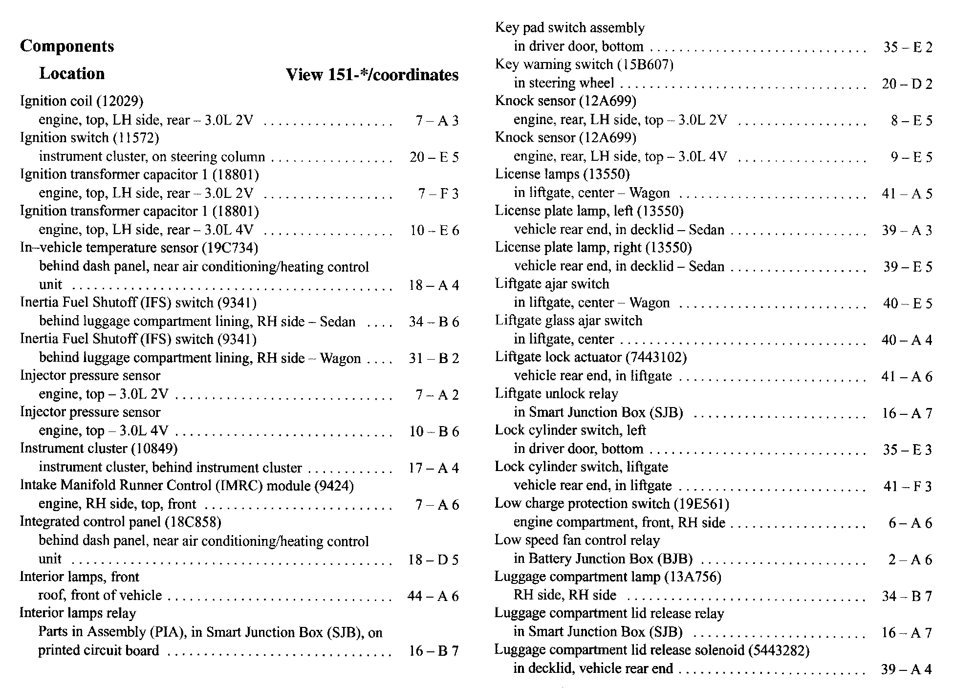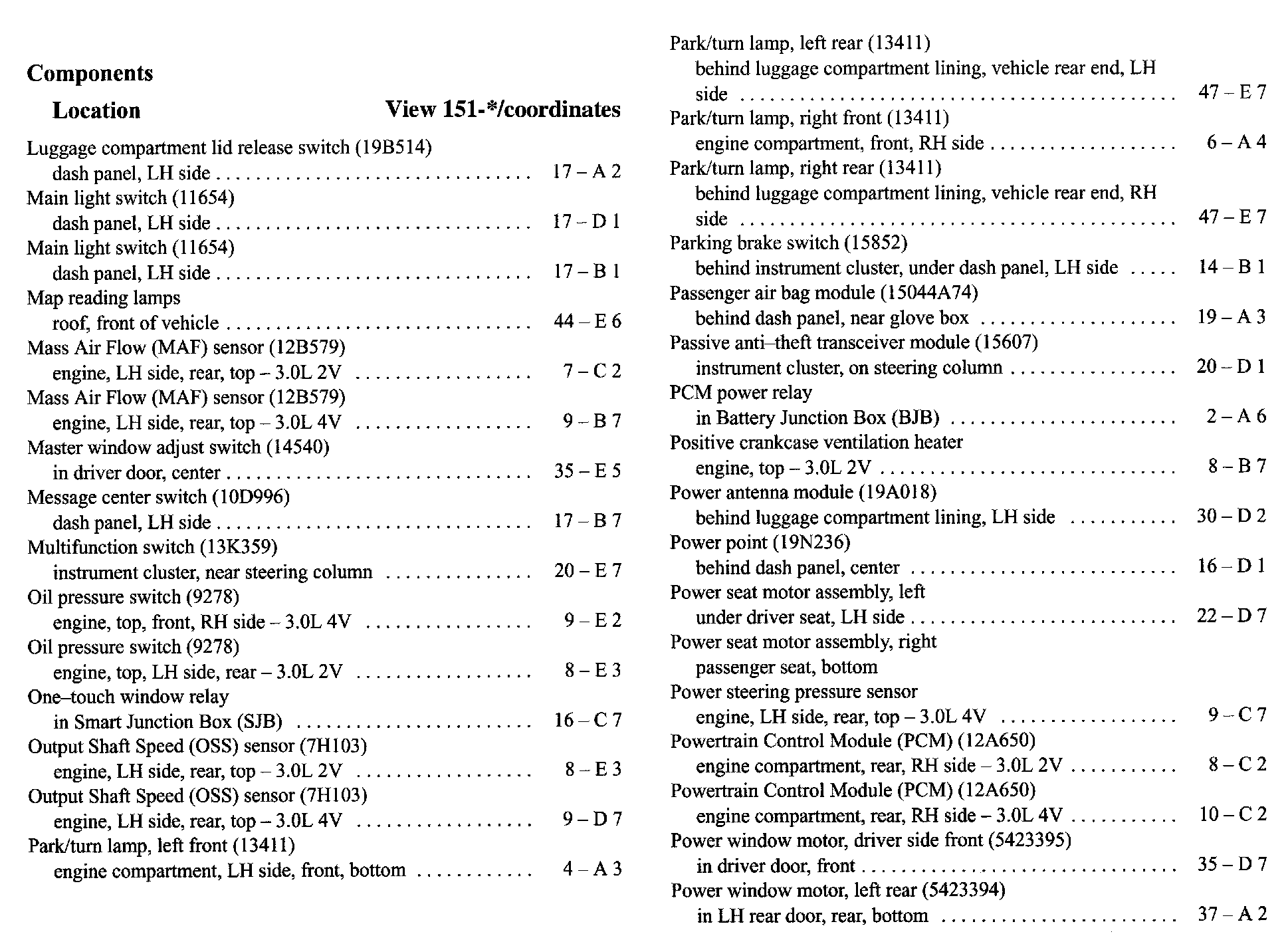 Home >> Ford >> 2005 >> Taurus V6-3.0L VIN U >> Repair and Diagnosis >> Diagrams >> Components >> Component Location Index