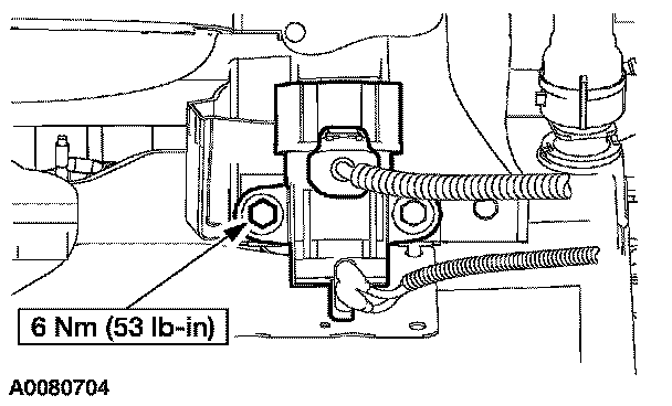 6. Remove the EGR vacuum regulator solenoid inboard fastener.