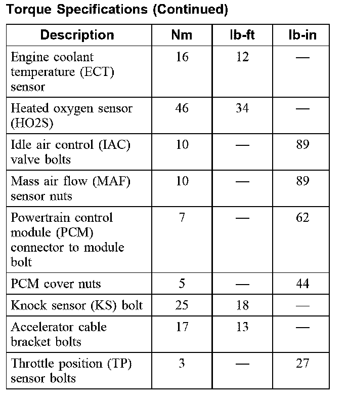 Torque Specifications (Part 1):