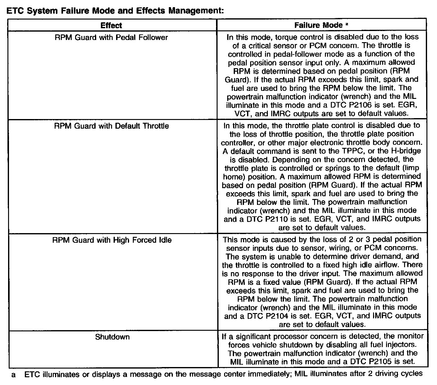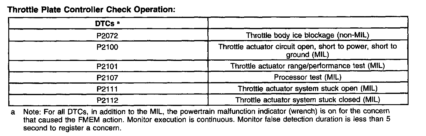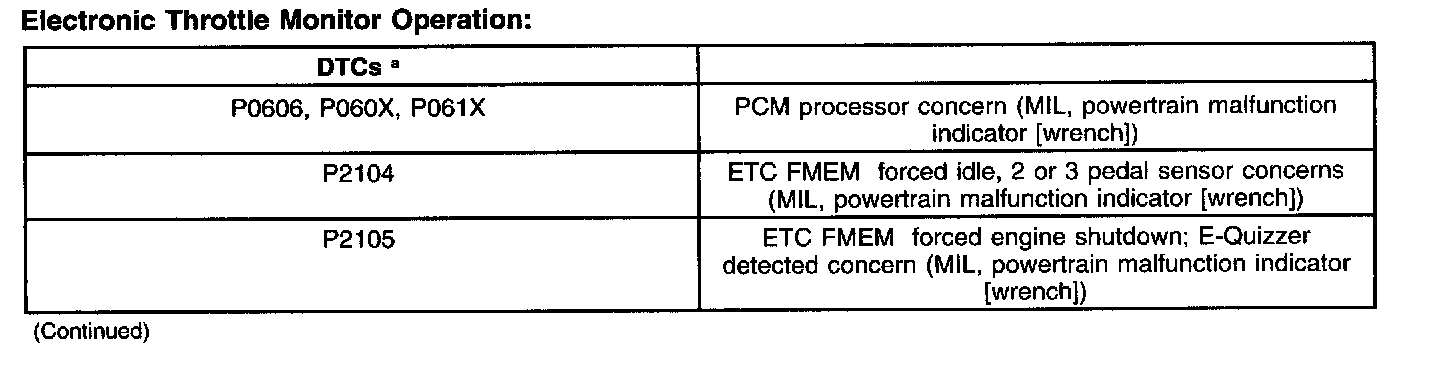 It should be noted that the ETC system illuminates a powertrain malfunction indicator (wrench) on the instrument cluster when a concern is present. Concerns are accompanied by diagnostic trouble codes (DTCs) and may also illuminate the malfunction indicator lamp (MIL).