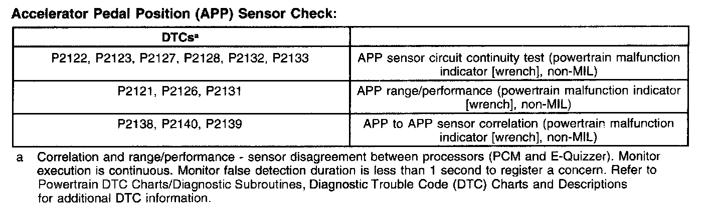 4. The 3 pedal position signals make sure the PCM receives a correct input even if 1 signal has a concern. The PCM determines if a signal is incorrect by calculating where it should be, inferred from the other signals. A value is substituted for an incorrect signal if 2 of the 3 signals are incorrect.