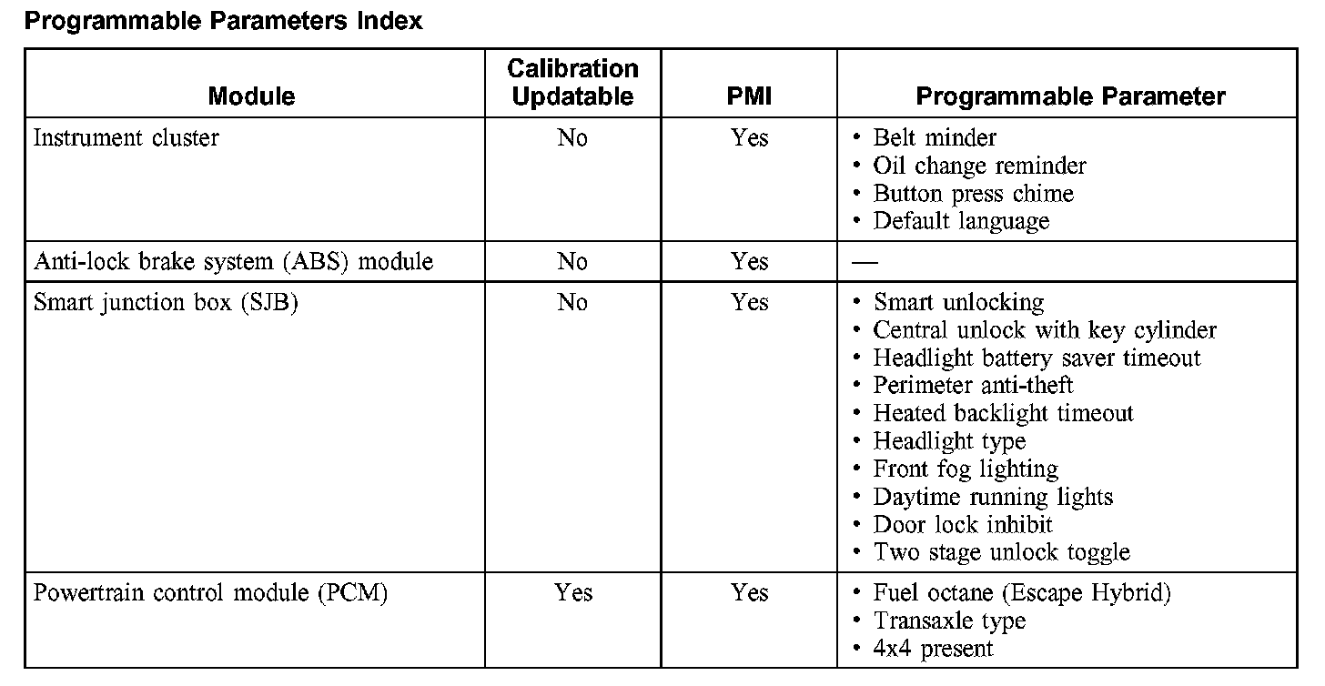 Programmable Parameters Index: