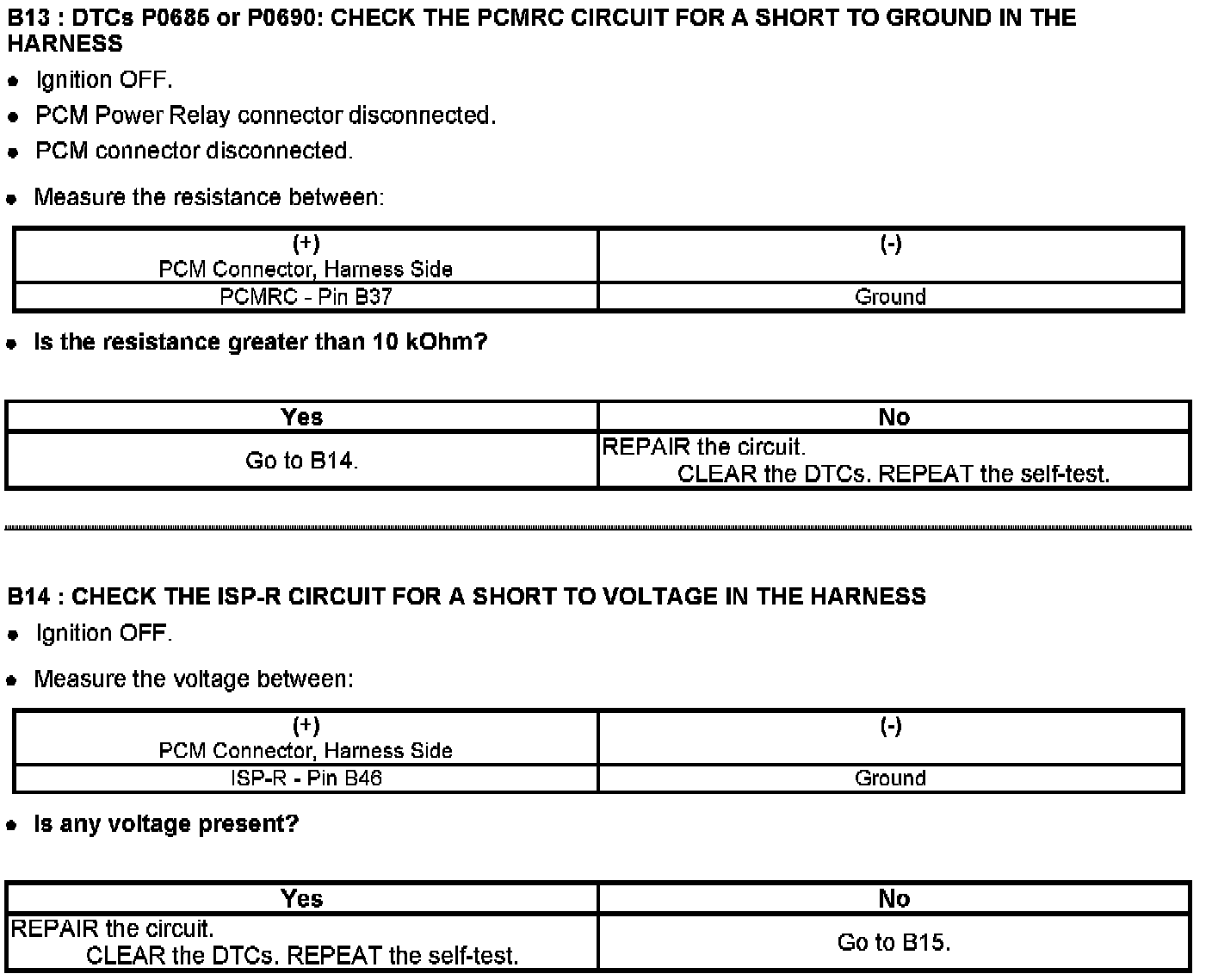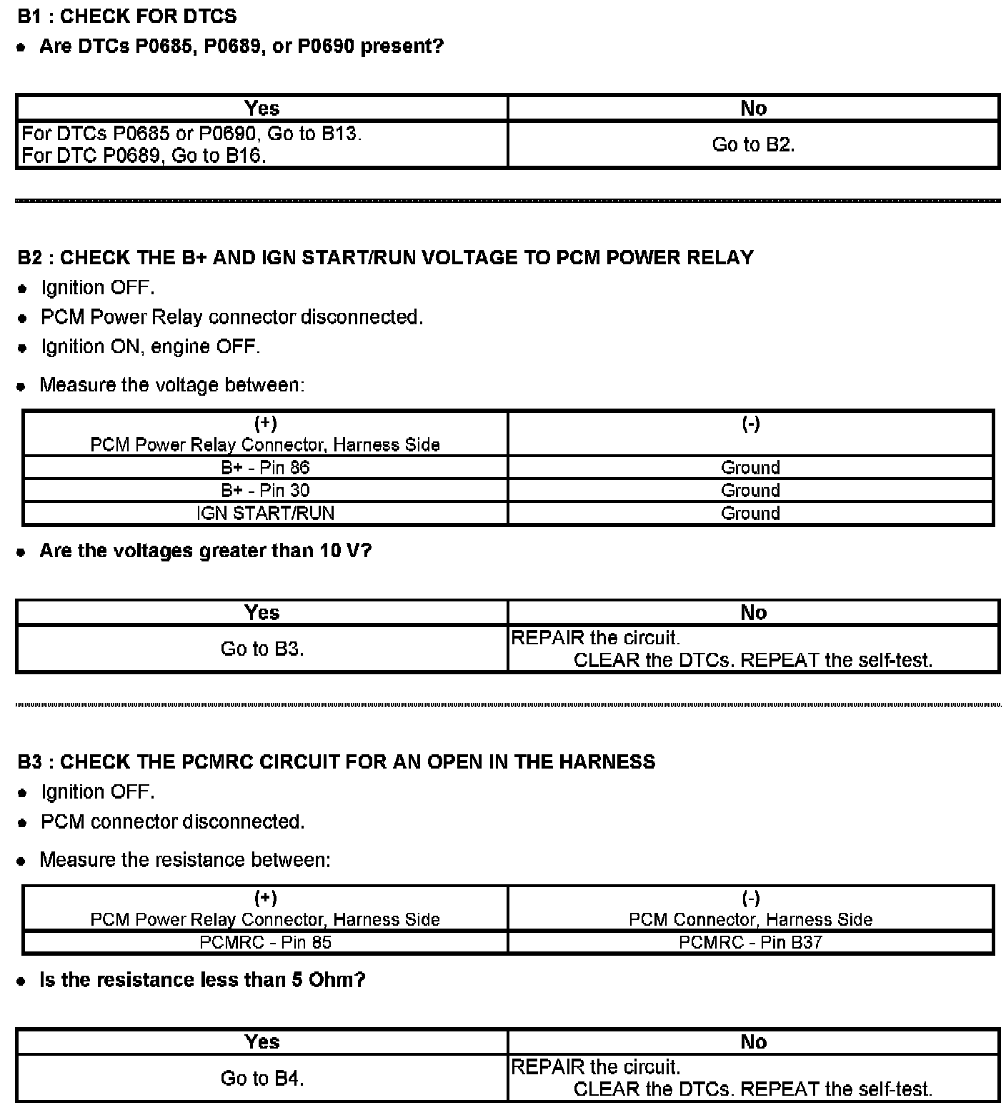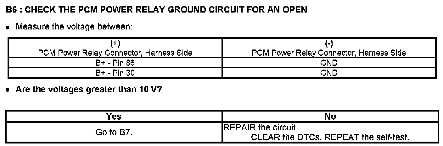 Test B: Powertrain Control Module (PCM) Power Relay
