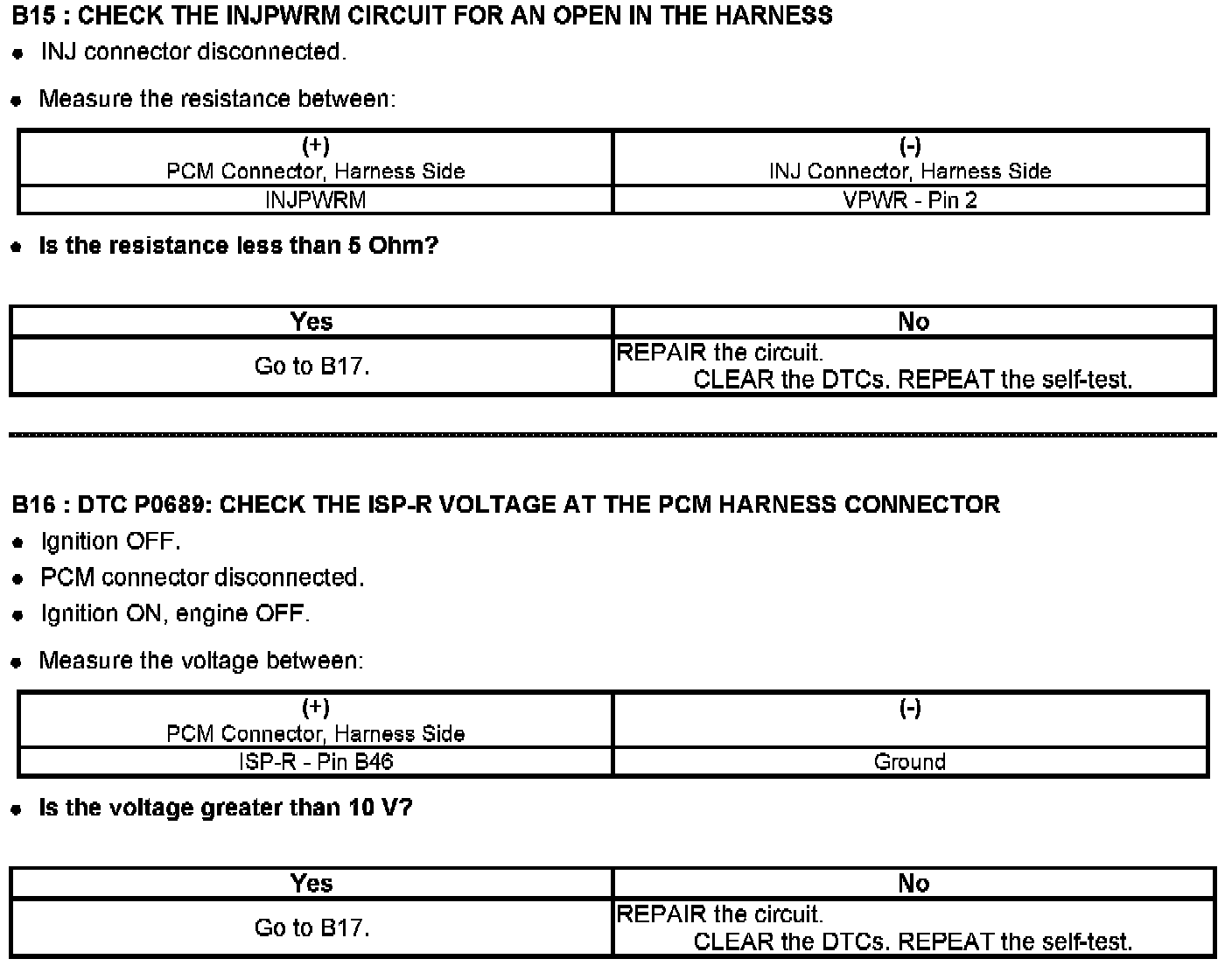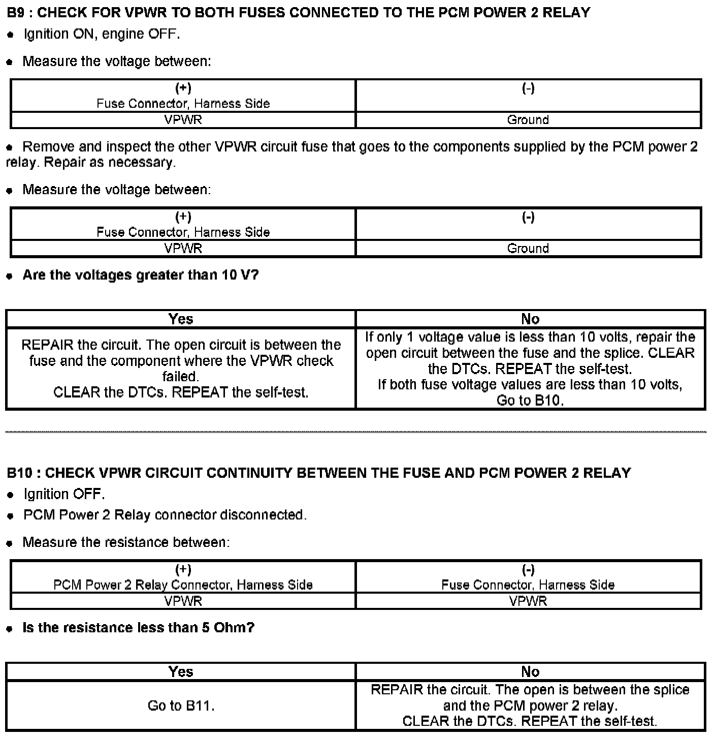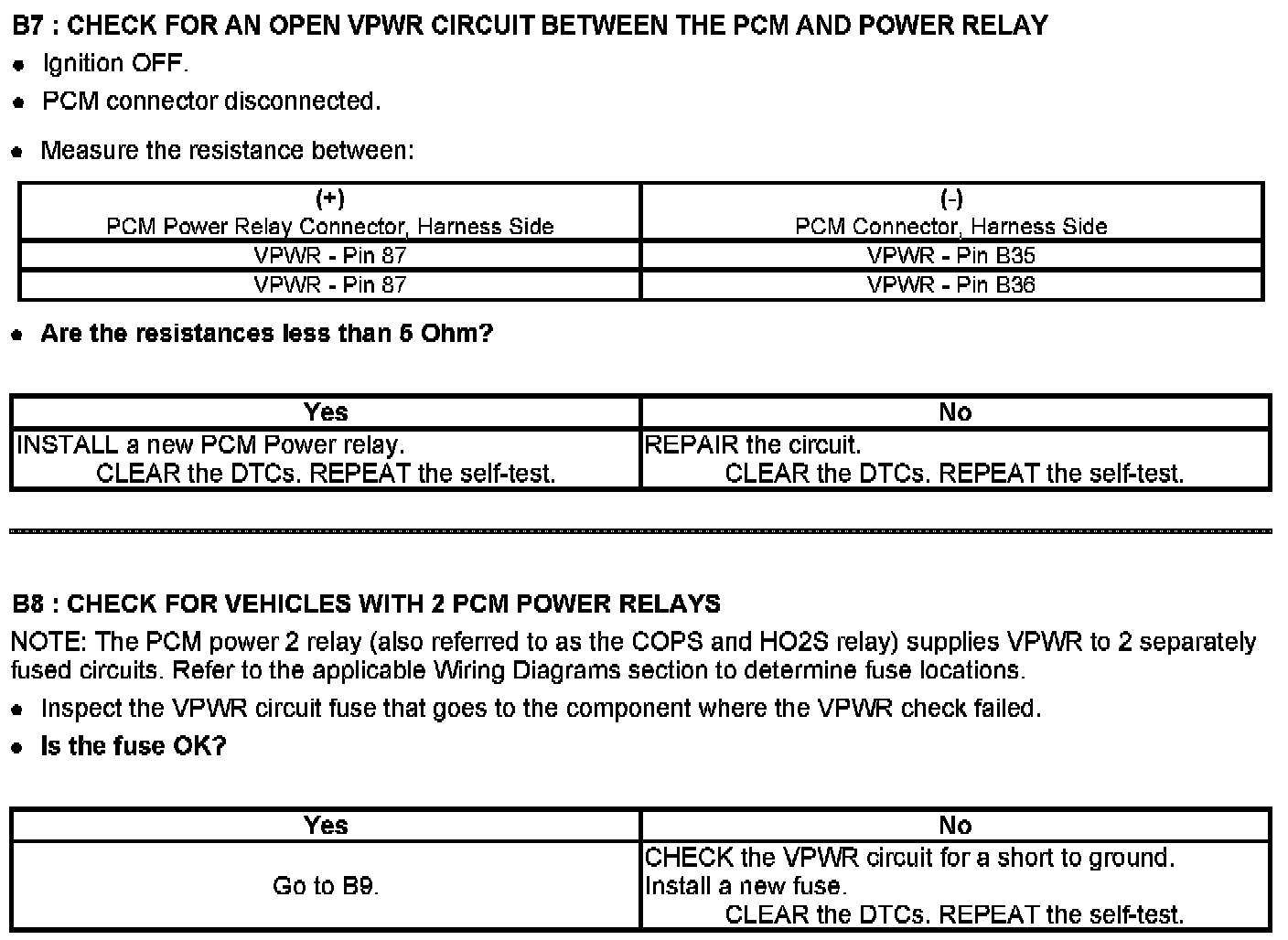 Test B: Powertrain Control Module (PCM) Power Relay