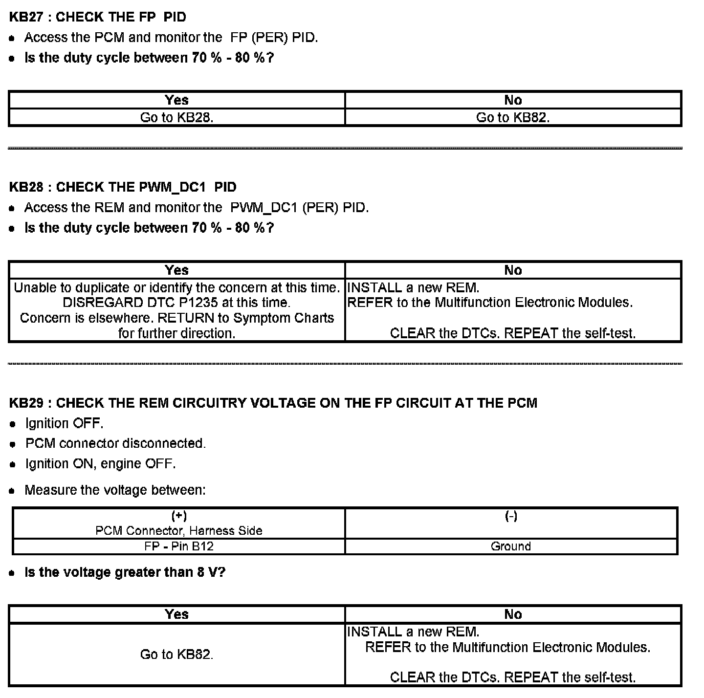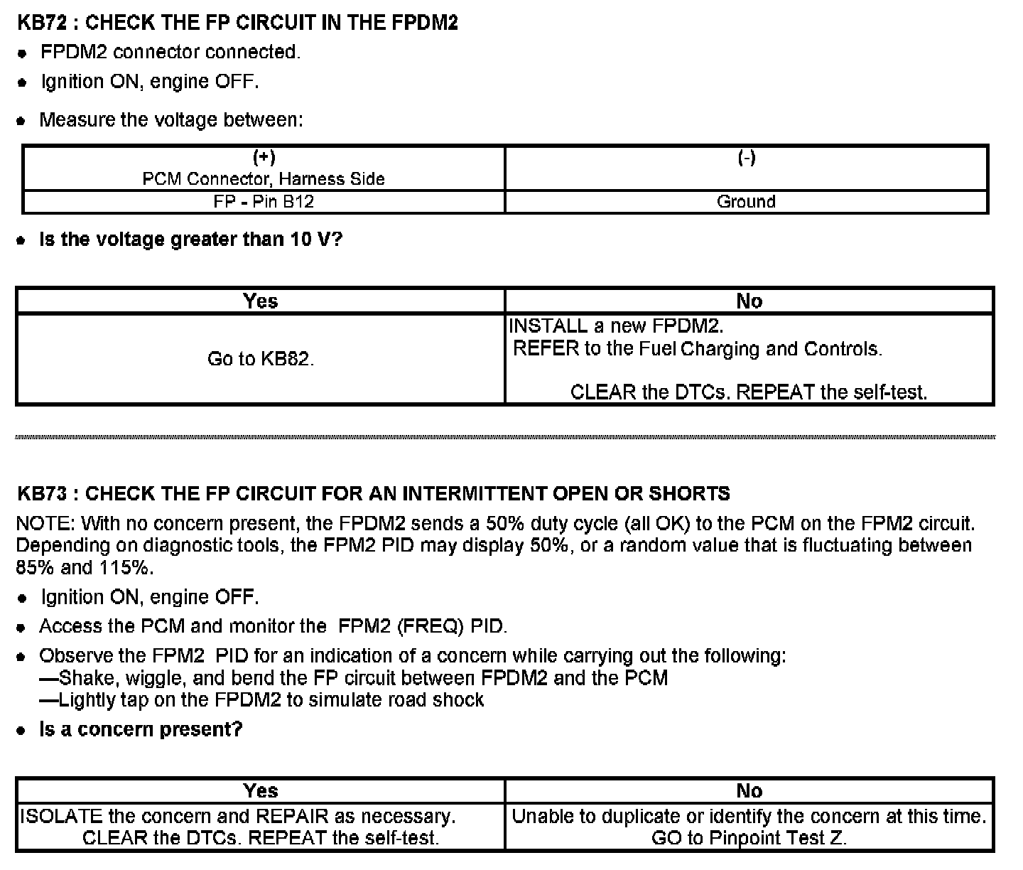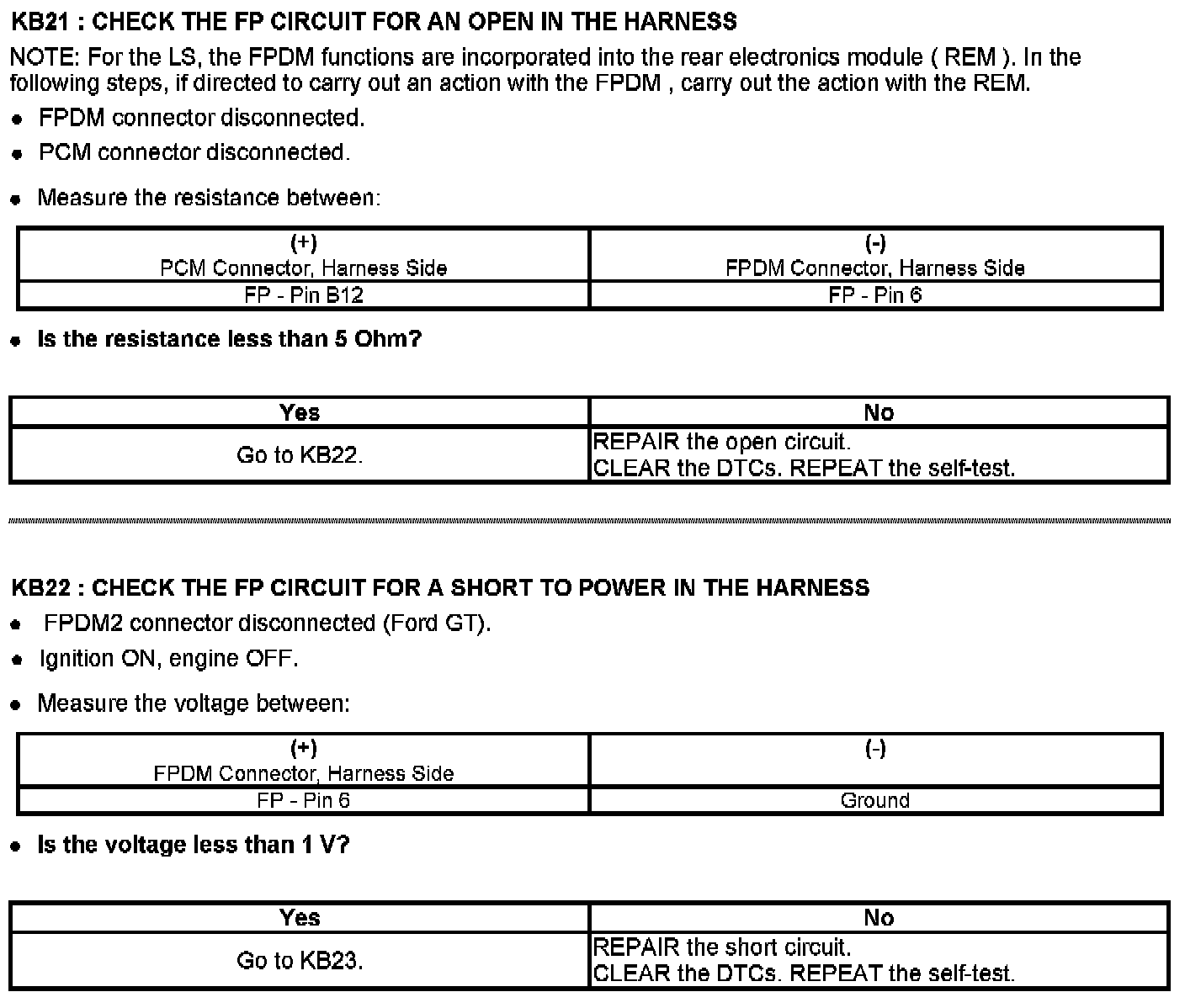 Home >> Ford >> 2006 >> Escape 2WD L4-2.3L VIN Z >> Repair and Diagnosis >> Powertrain Management >> Computers and Control Systems >> Testing and Inspection >> Pinpoint Tests >> Tests KB: Fuel Pump Driver Module