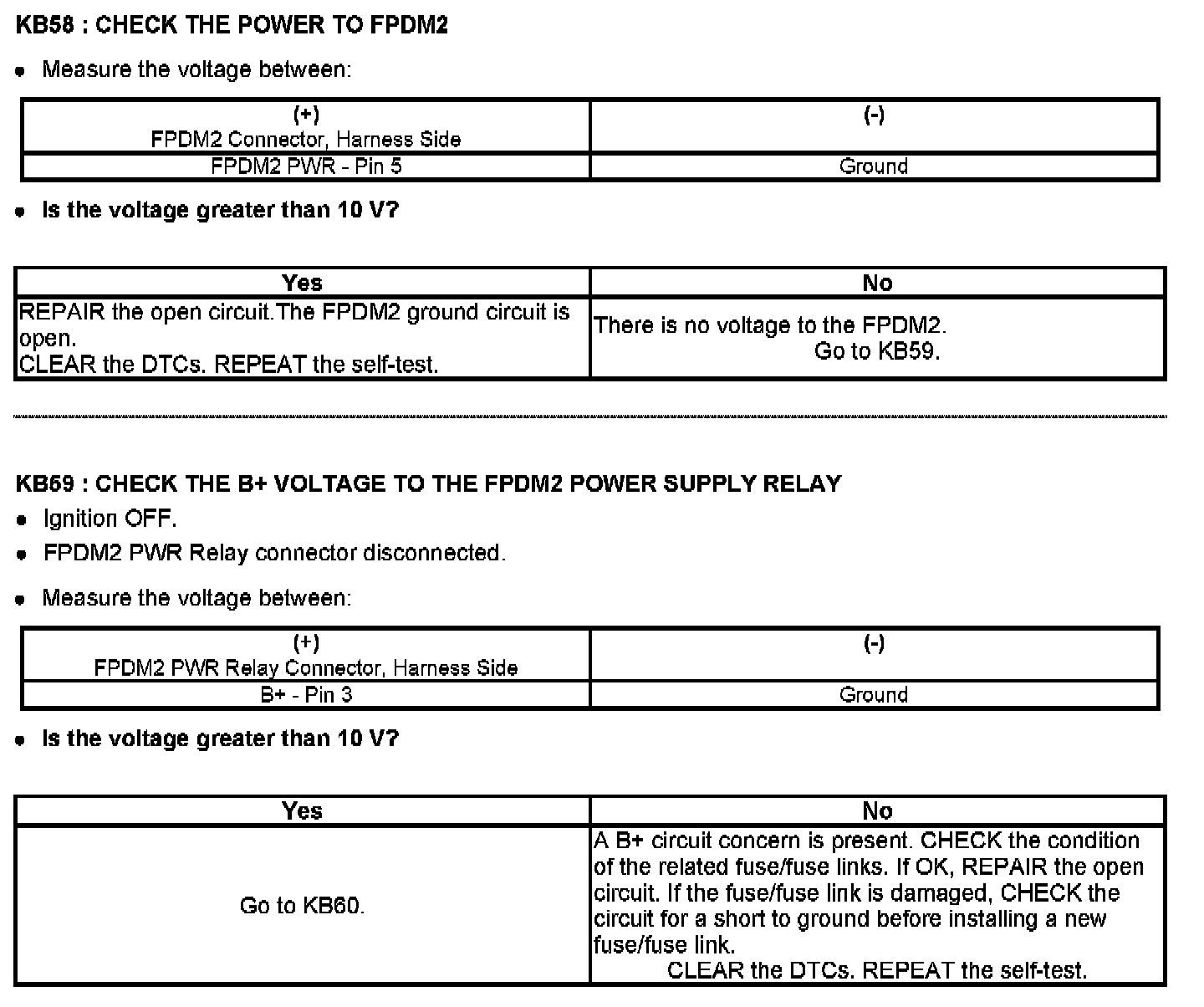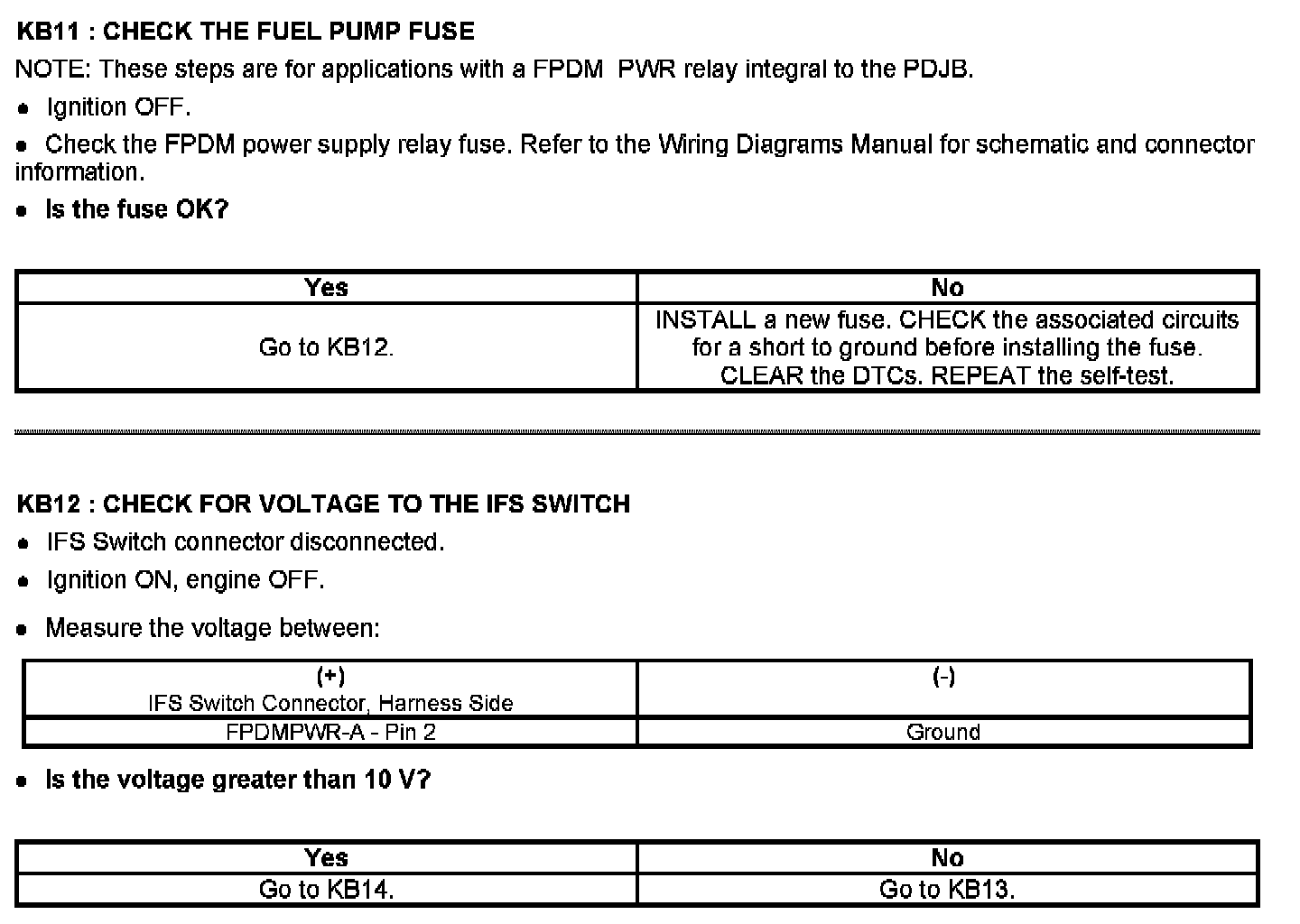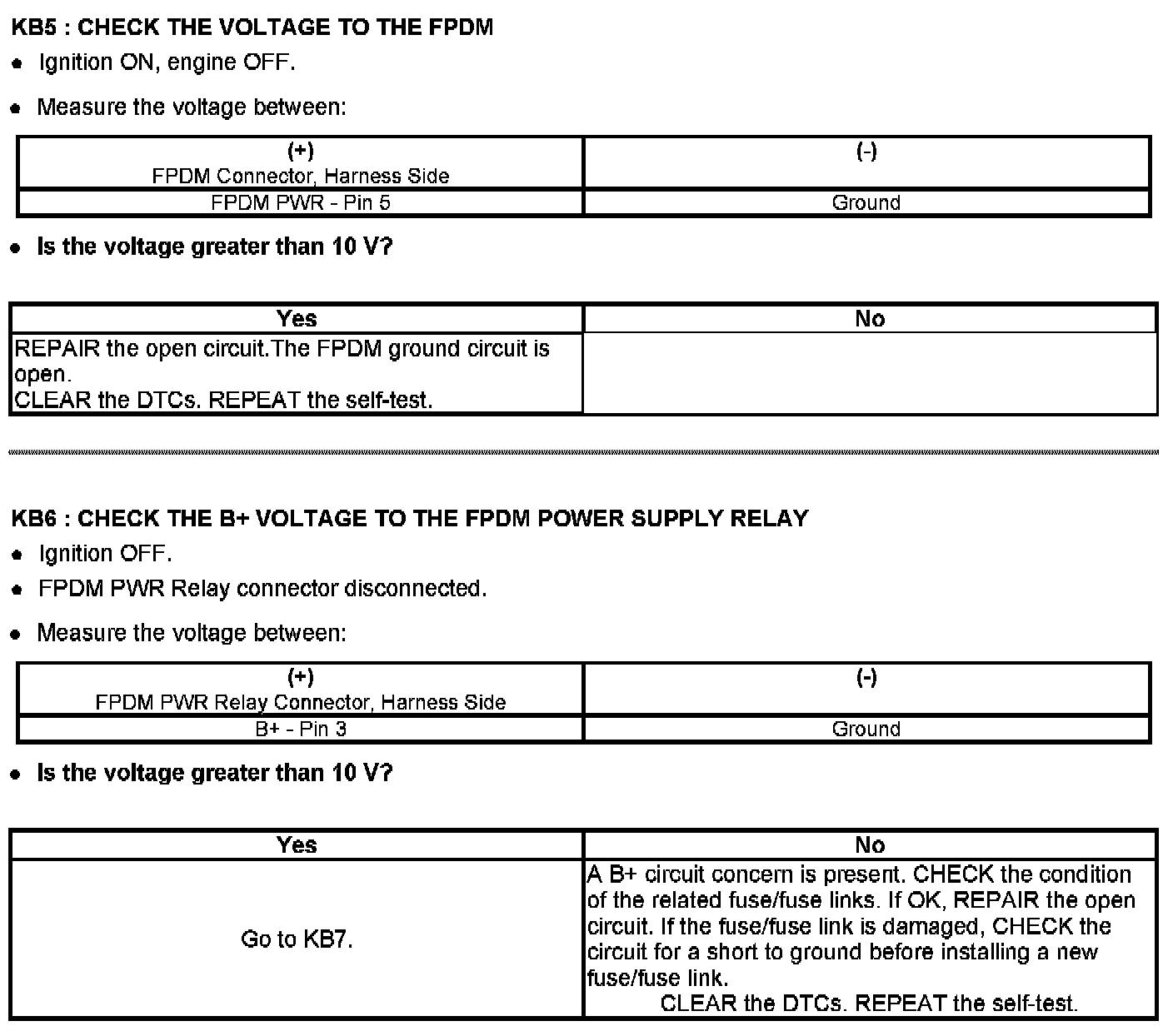 Home >> Ford >> 2006 >> Escape 2WD L4-2.3L VIN Z >> Repair and Diagnosis >> Powertrain Management >> Computers and Control Systems >> Testing and Inspection >> Pinpoint Tests >> Tests KB: Fuel Pump Driver Module