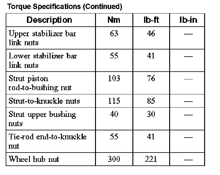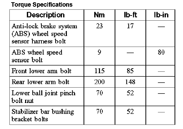 Torque Specifications