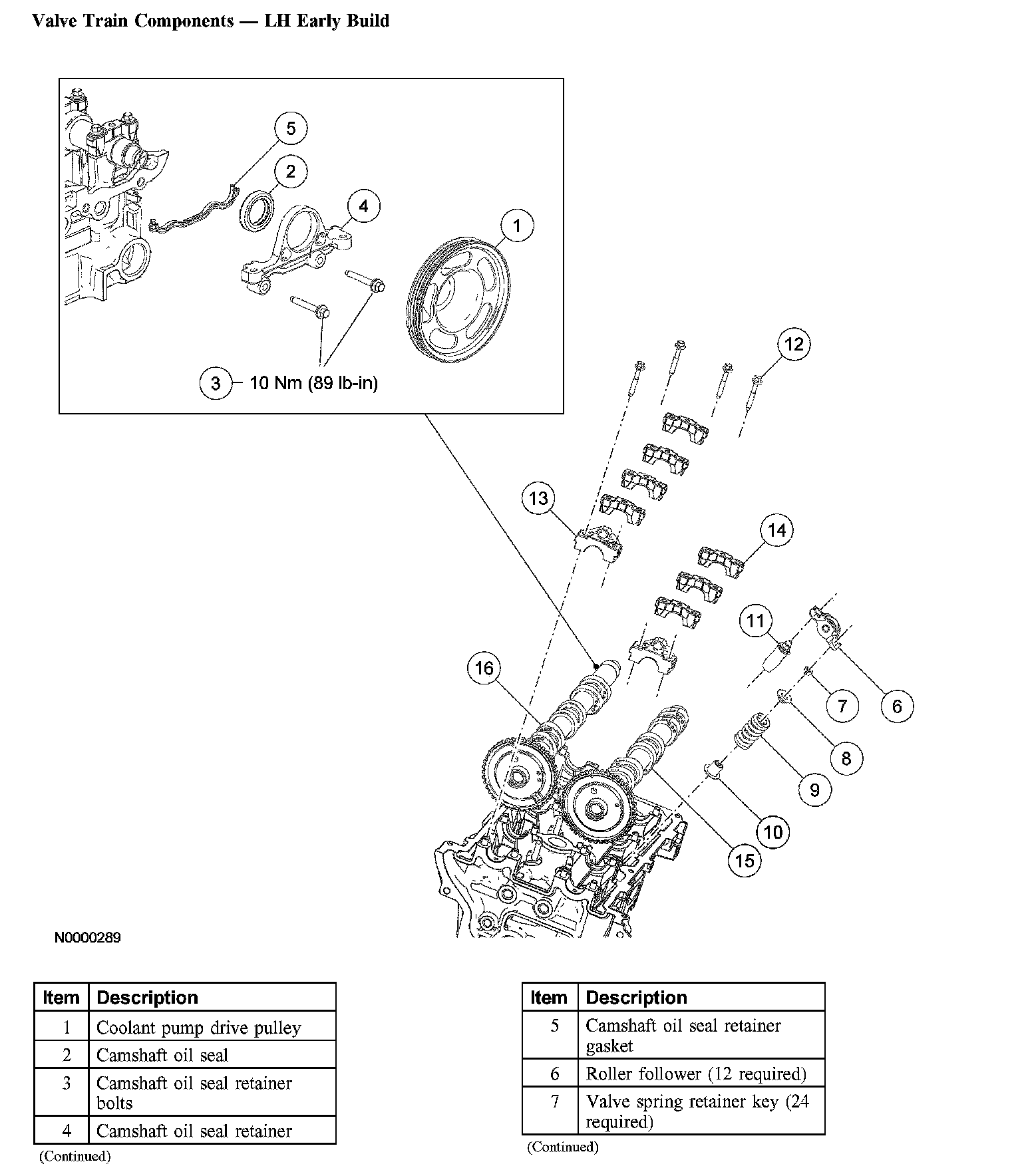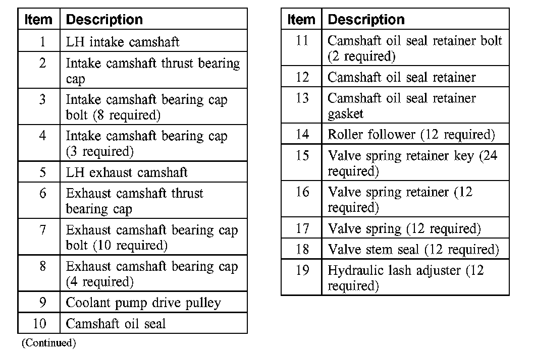 Valve Train Components - Exploded View Valve Train Components - LH Early Build: