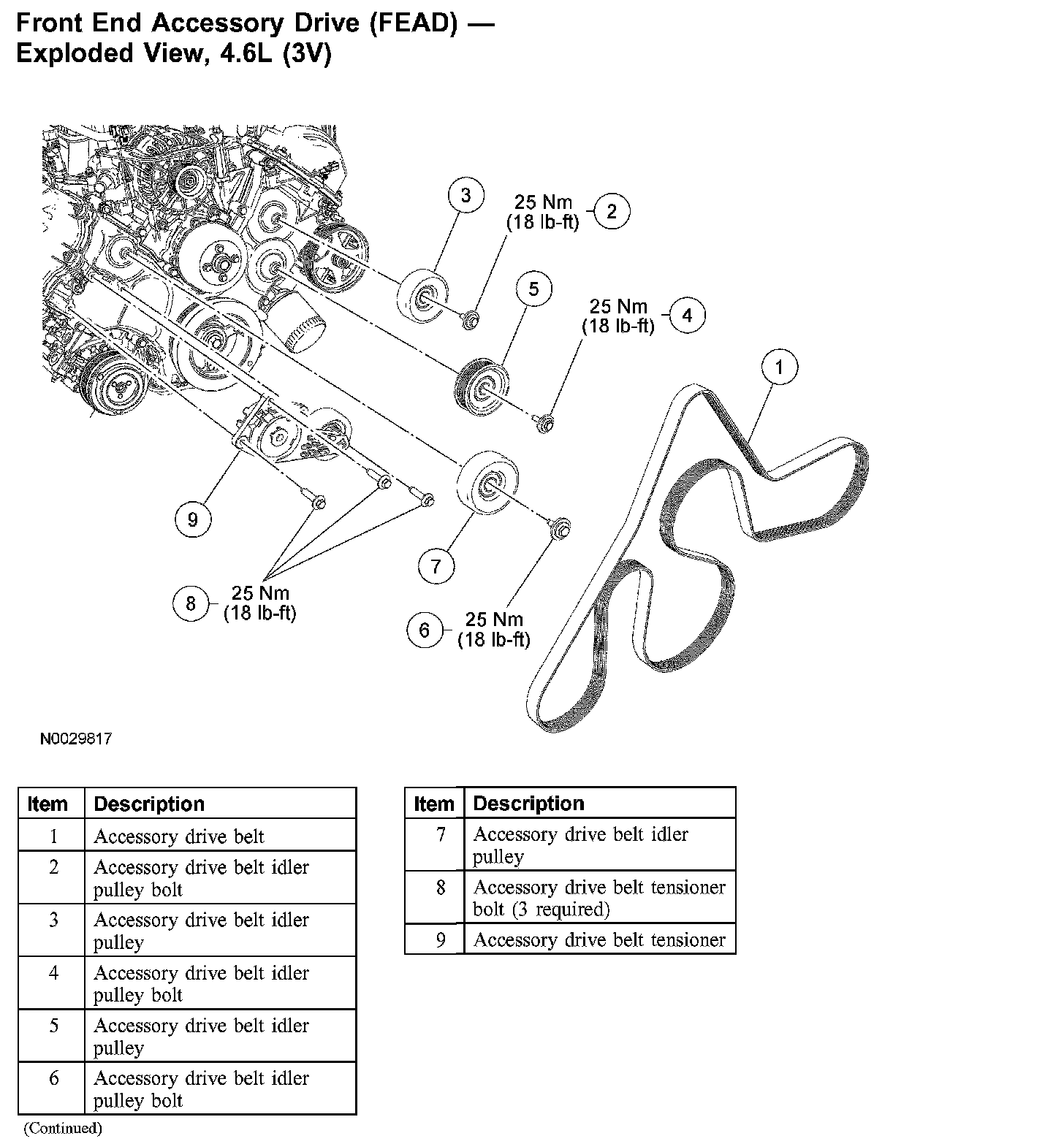 Front End Accessory Drive (FEAD) Exploded View, 4.6L (3V):
