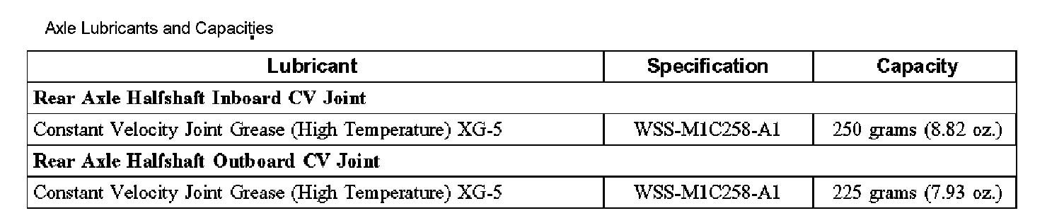 Axle Lubricants and Capacities:
