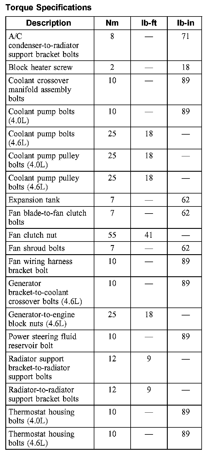 Torque Specifications:
