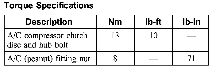 Torque Specifications: