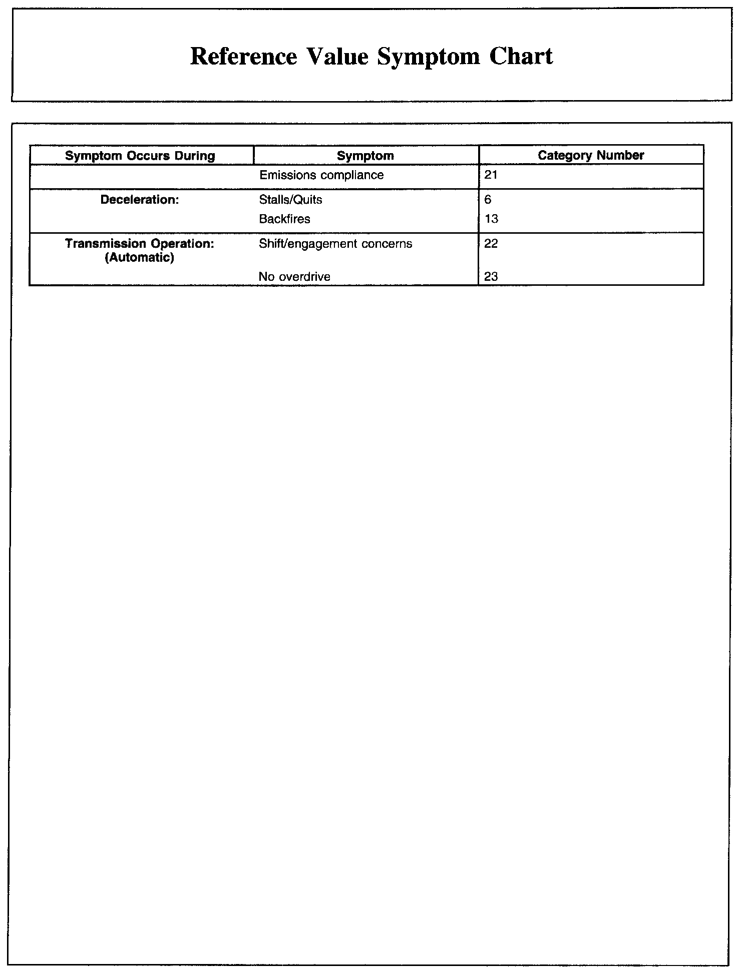 Reference Value Symptom Chart (Part 1):