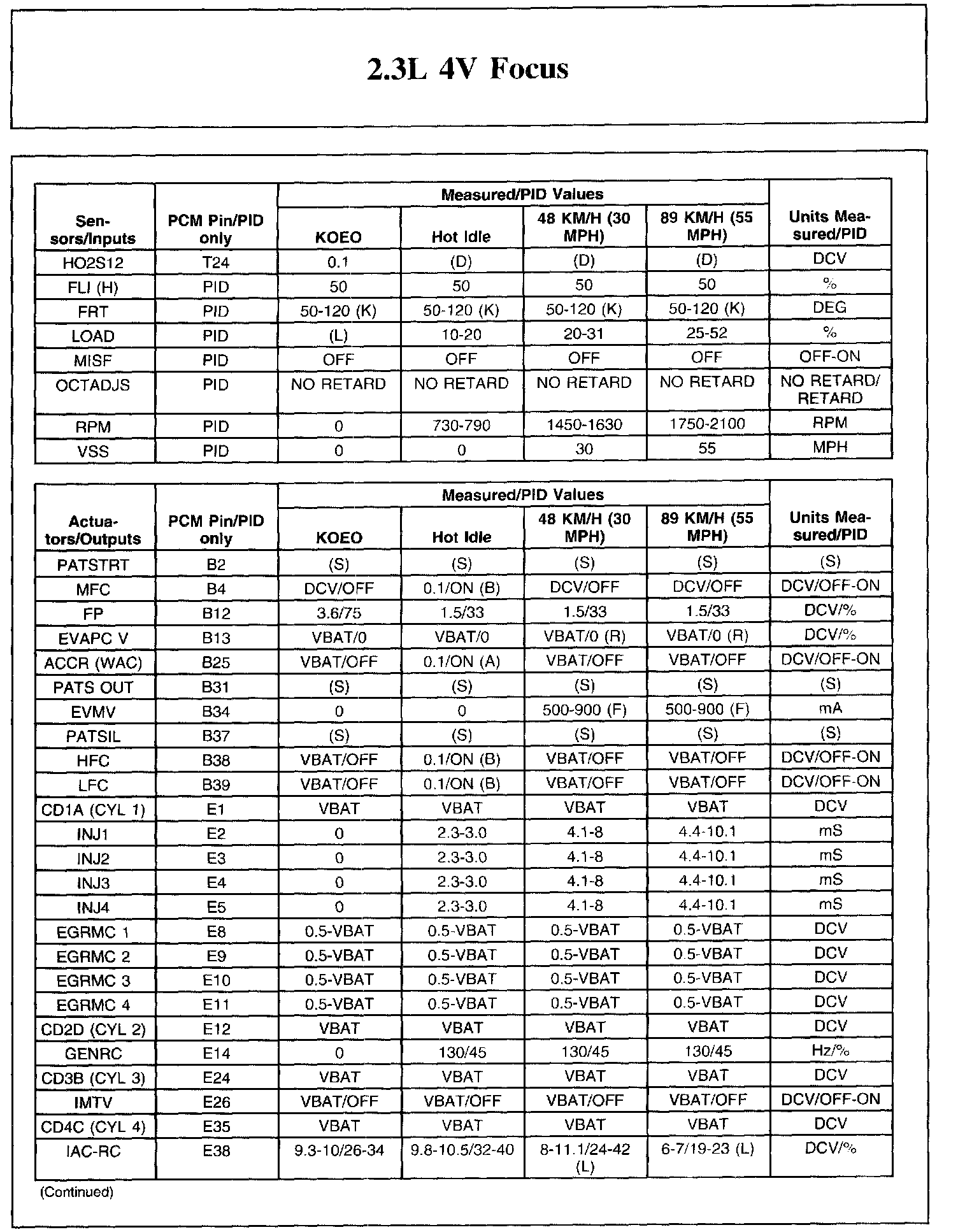 The Typical Diagnostic Reference Value Charts do not display fault parameter identifications (PIDs). These are PIDs which indicate a hard fault with the circuit. They display a value of YES or NO and are PIDs ending with the letter F.