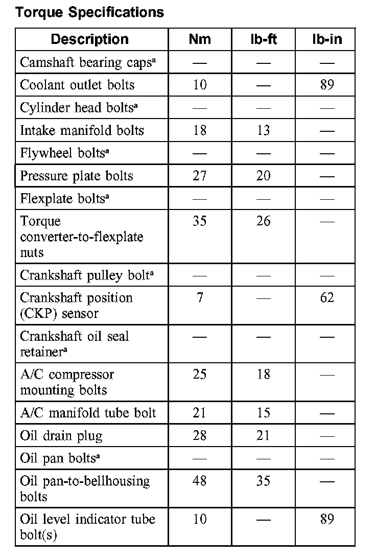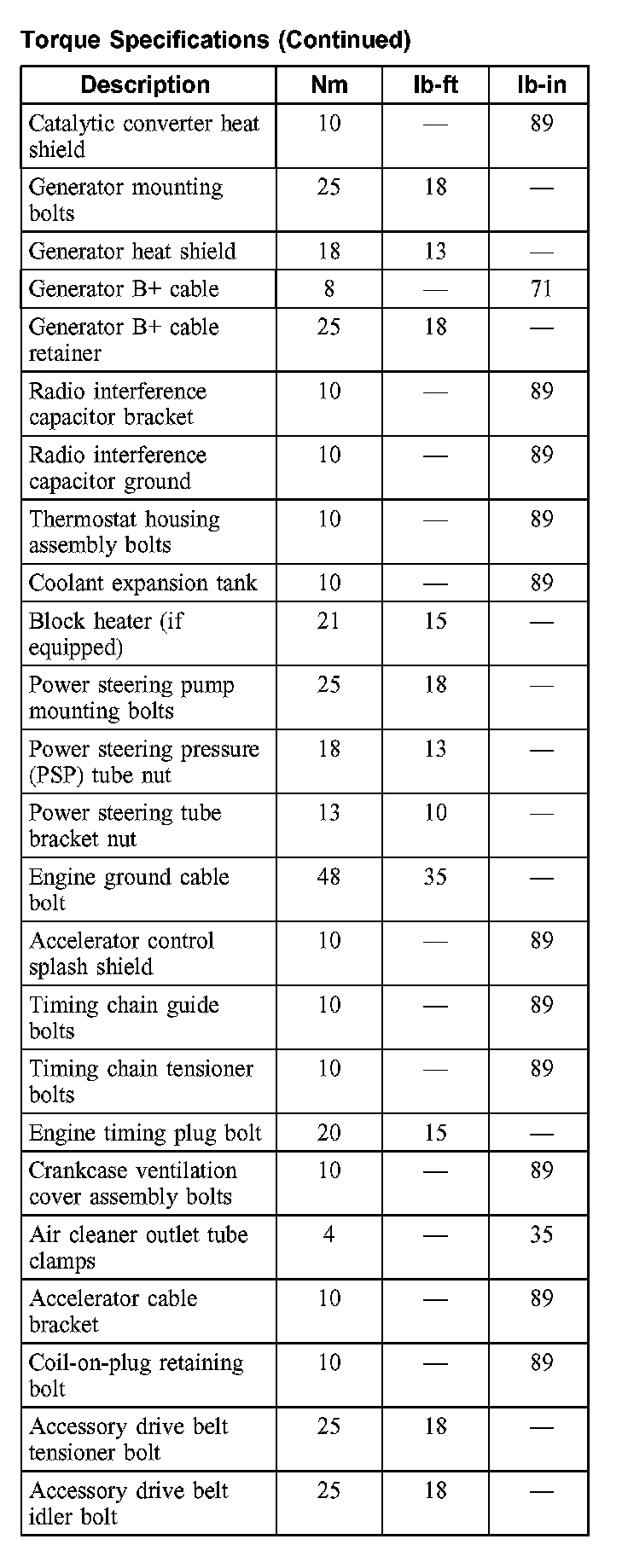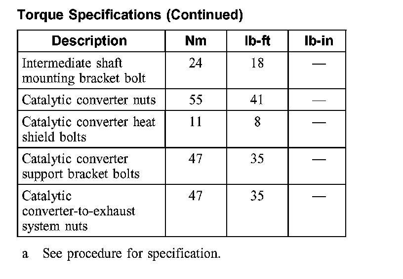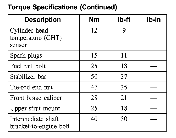 Torque Specifications: