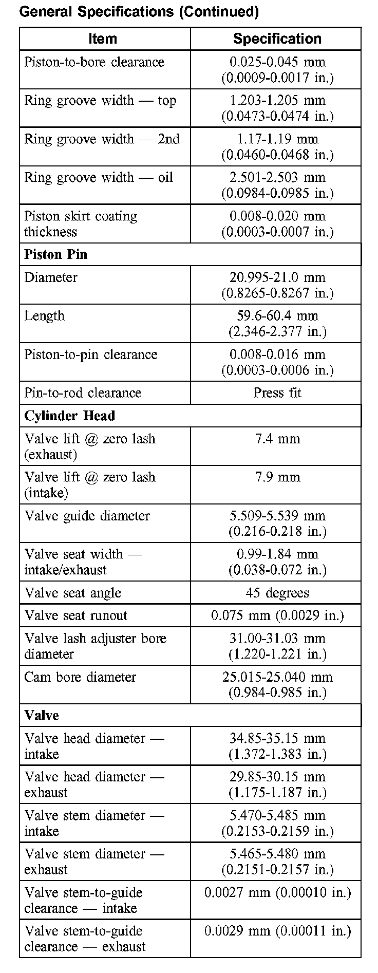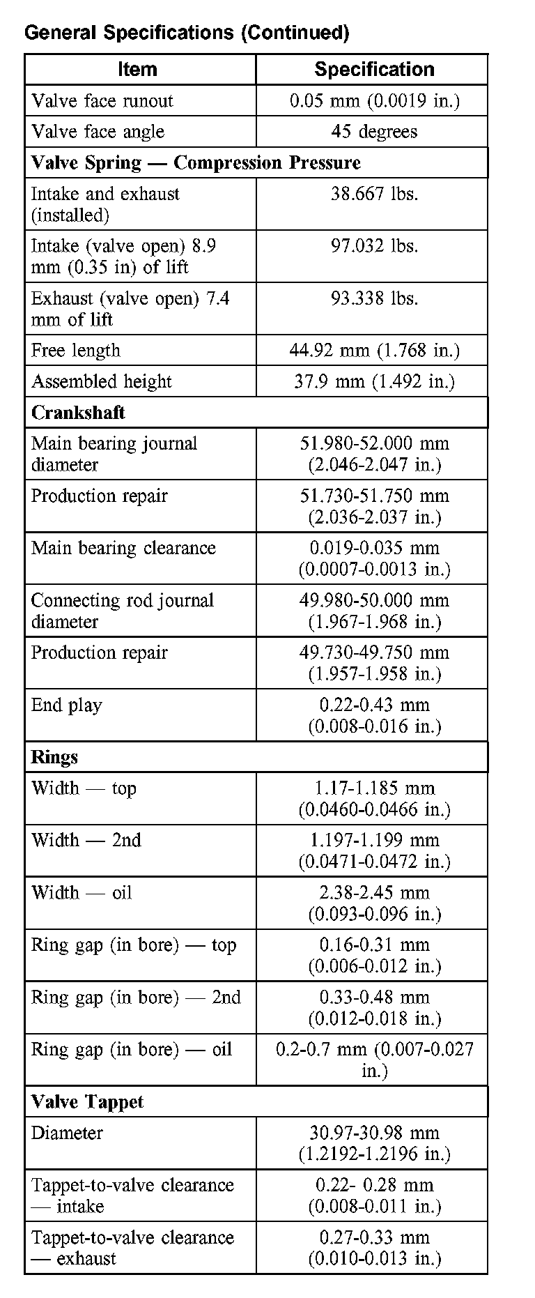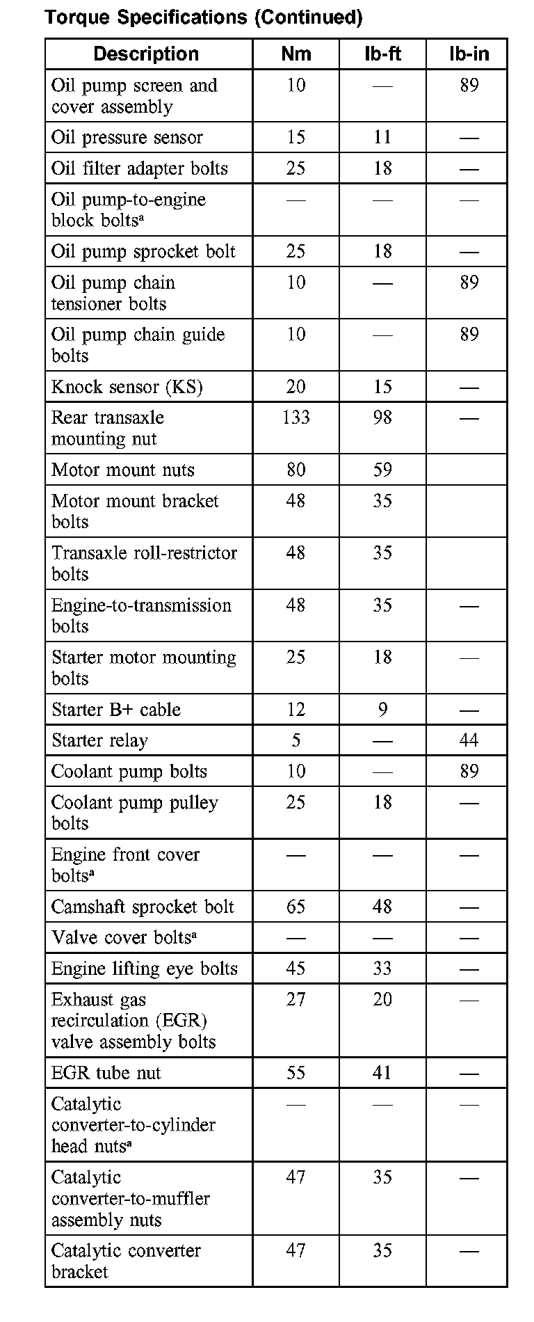 Torque Specifications: