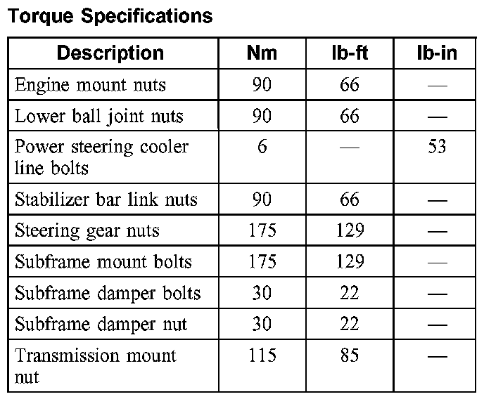 Torque Specifications: