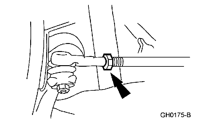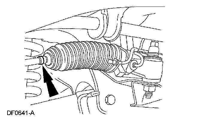 6. NOTE: Do not allow the steering gear bellows to twist when the front wheel spindle tie rod is rotated.
