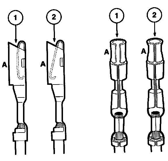 Any probe entering the terminal may enlarge the contact spring opening creating an intermittent signal. Insert the correct mating terminal (Location A) from the service kit and feel for a loose fit.