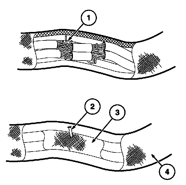 The illustrations are known examples of wiring harness, splices and connectors that will create intermittent electrical concerns. The concerns are hidden and can only be discovered by a physical evaluation in each illustration.