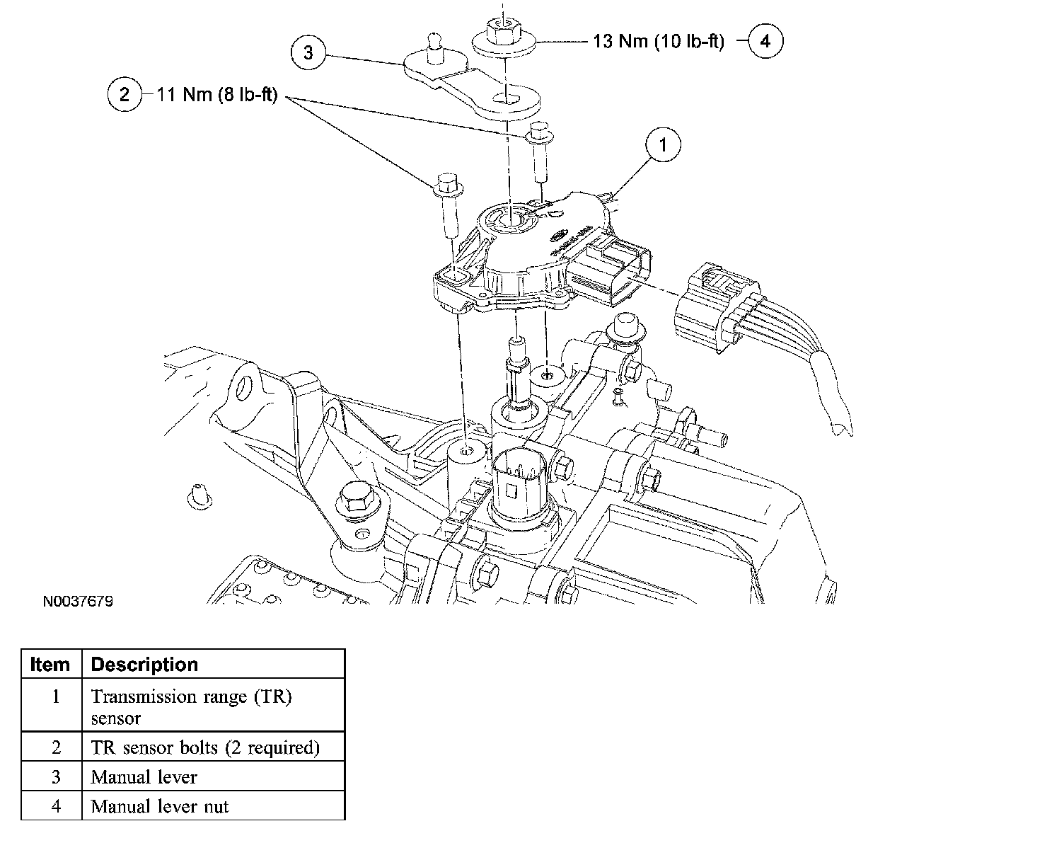 1. Install the digital TR sensor and loosely install the bolts.