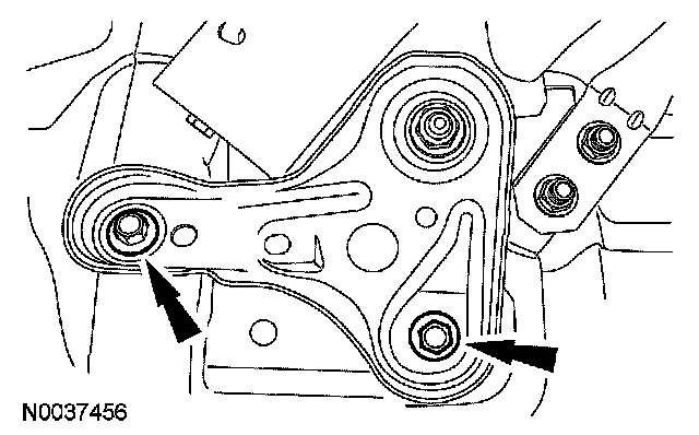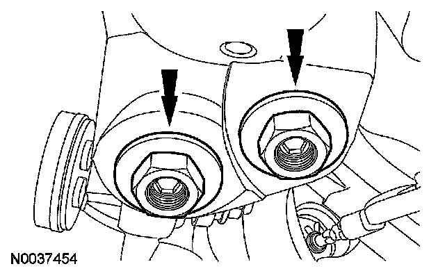 18. Remove the 2 rear mounting nuts and washers from the front subframe.