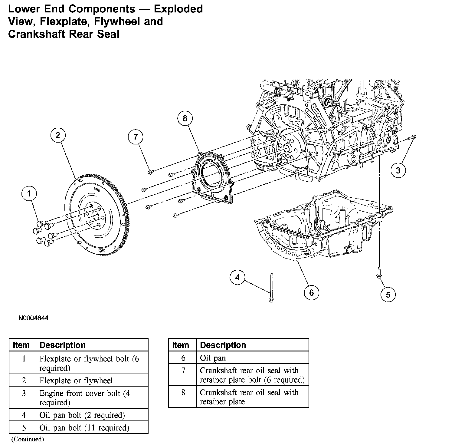 Lower End Components - Exploded View, Flexplate, Flywheel and Crankshaft Rear Seal
