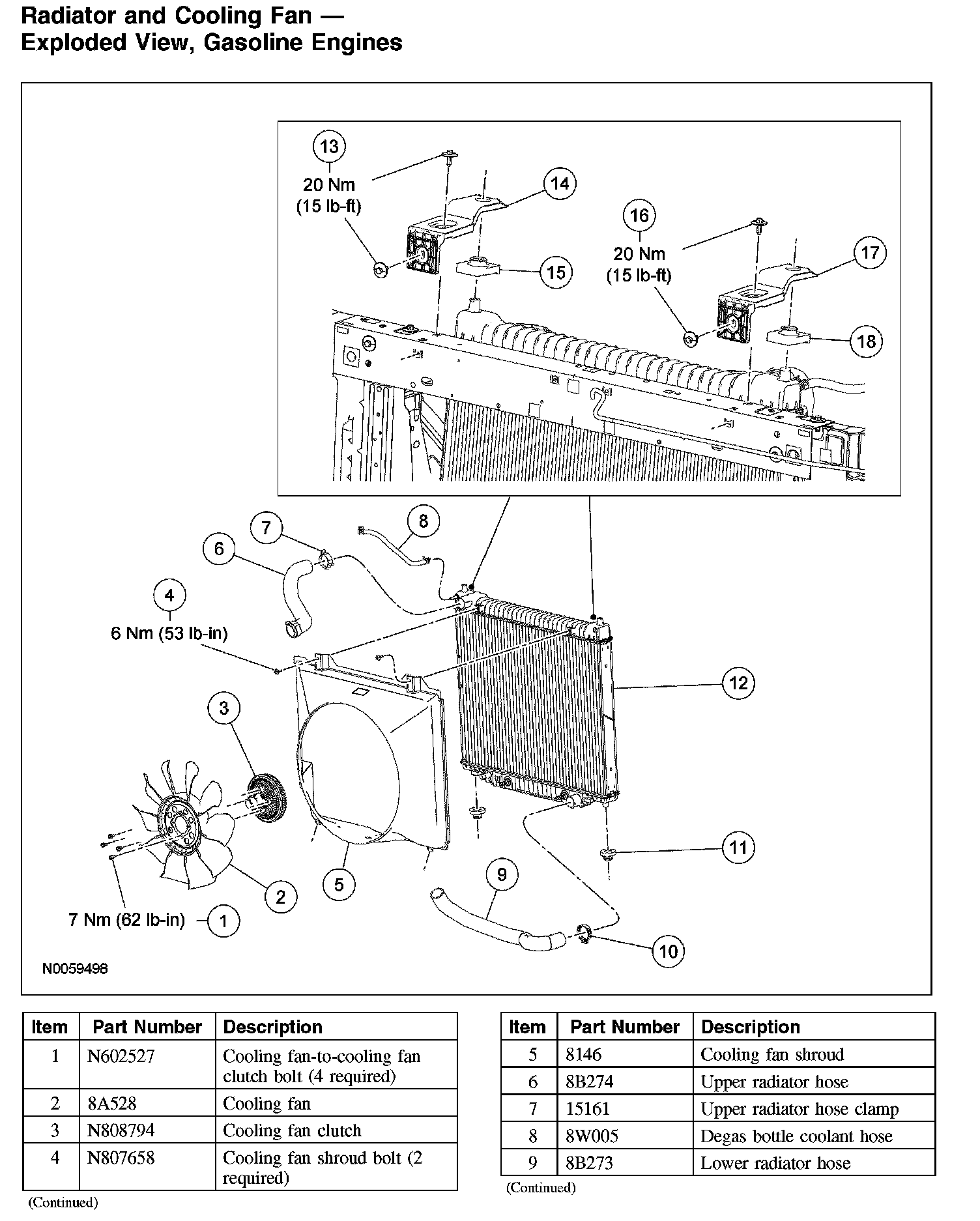 Radiator and Cooling Fan - Exploded View, Gasoline Engines (Part 2):
