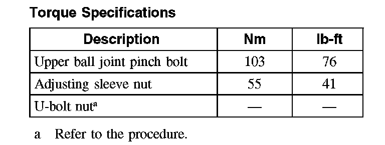 Torque Specifications: