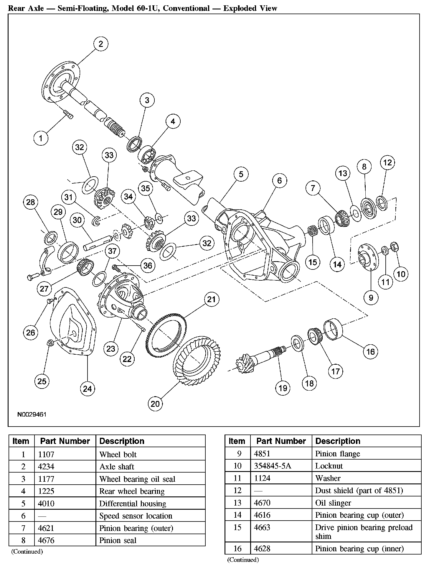 Rear Axle - Semi-Floating, Model 60-1U, Conventional - Exploded View (Part 1):