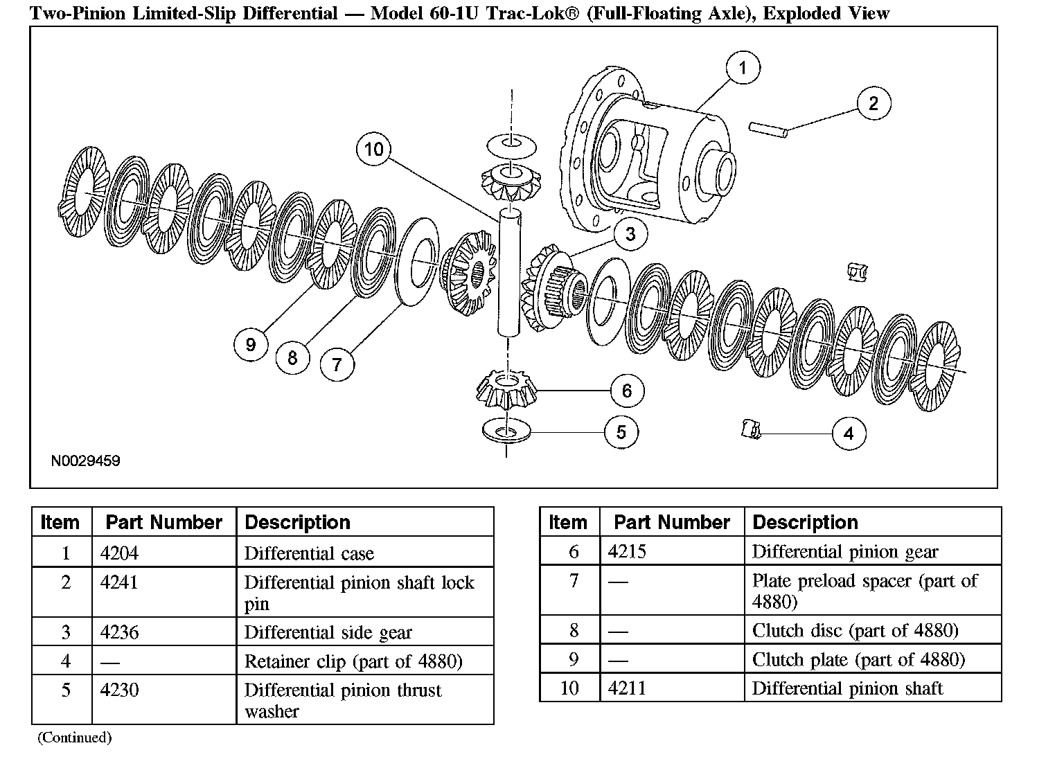 Two-Pinion Limited-Slip Differential - Model 60-1U Trac-Lok(R) (Full-Floating Axle), Exploded View: