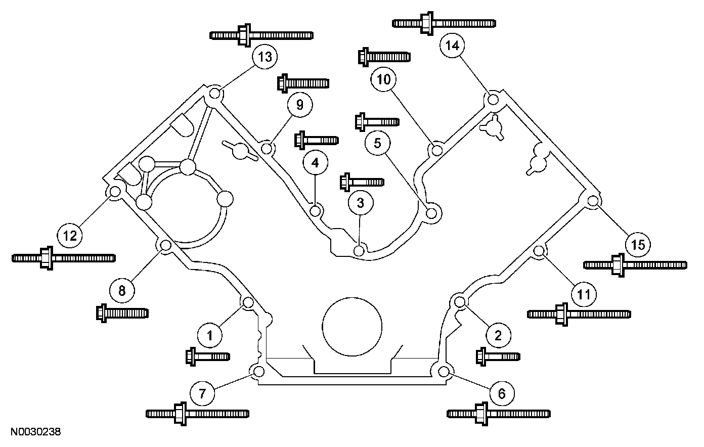 Engine Front Cover Front FastenersFirst pass: fasteners 1-5 25 Nm (18 ft. lbs).