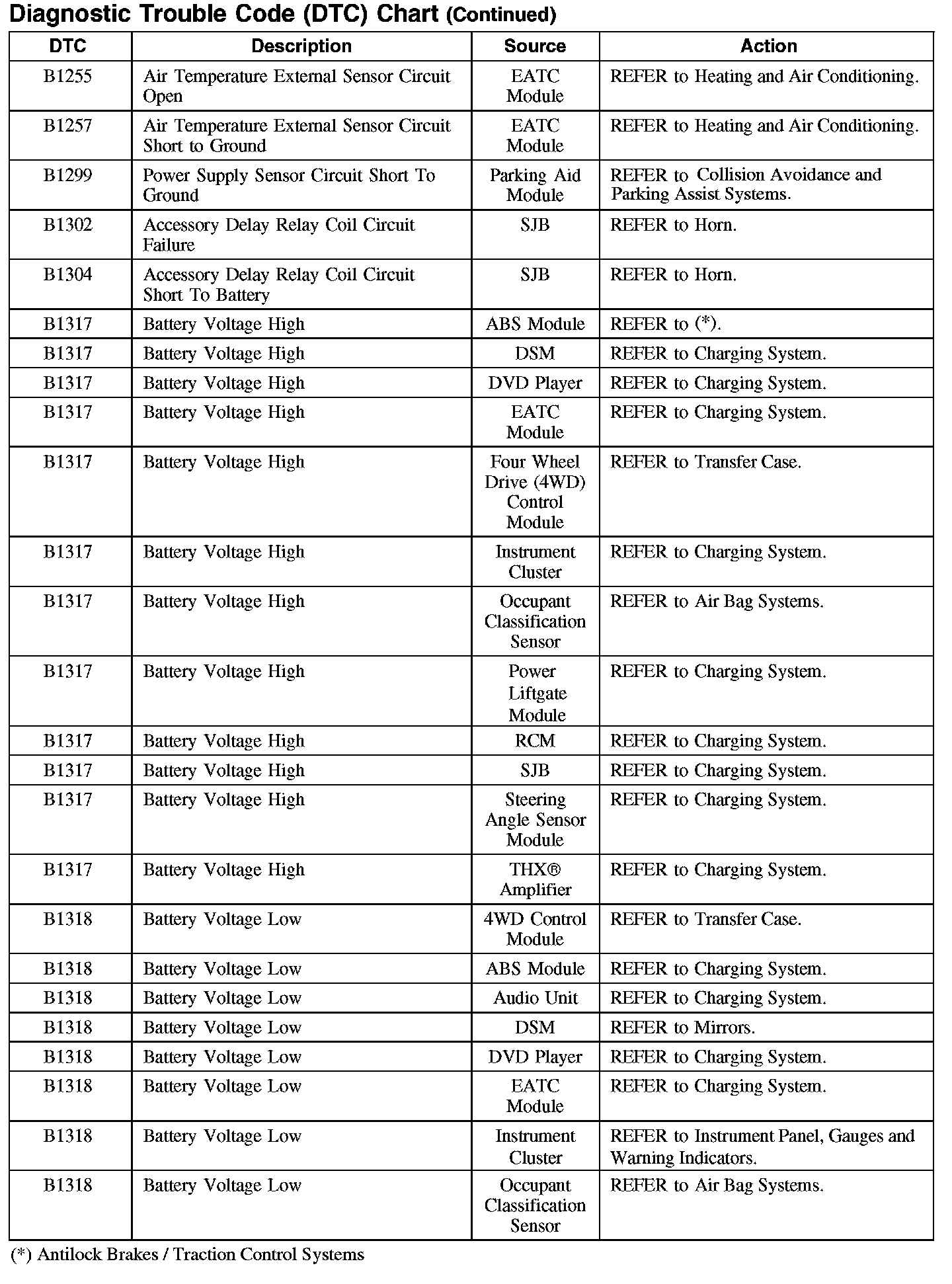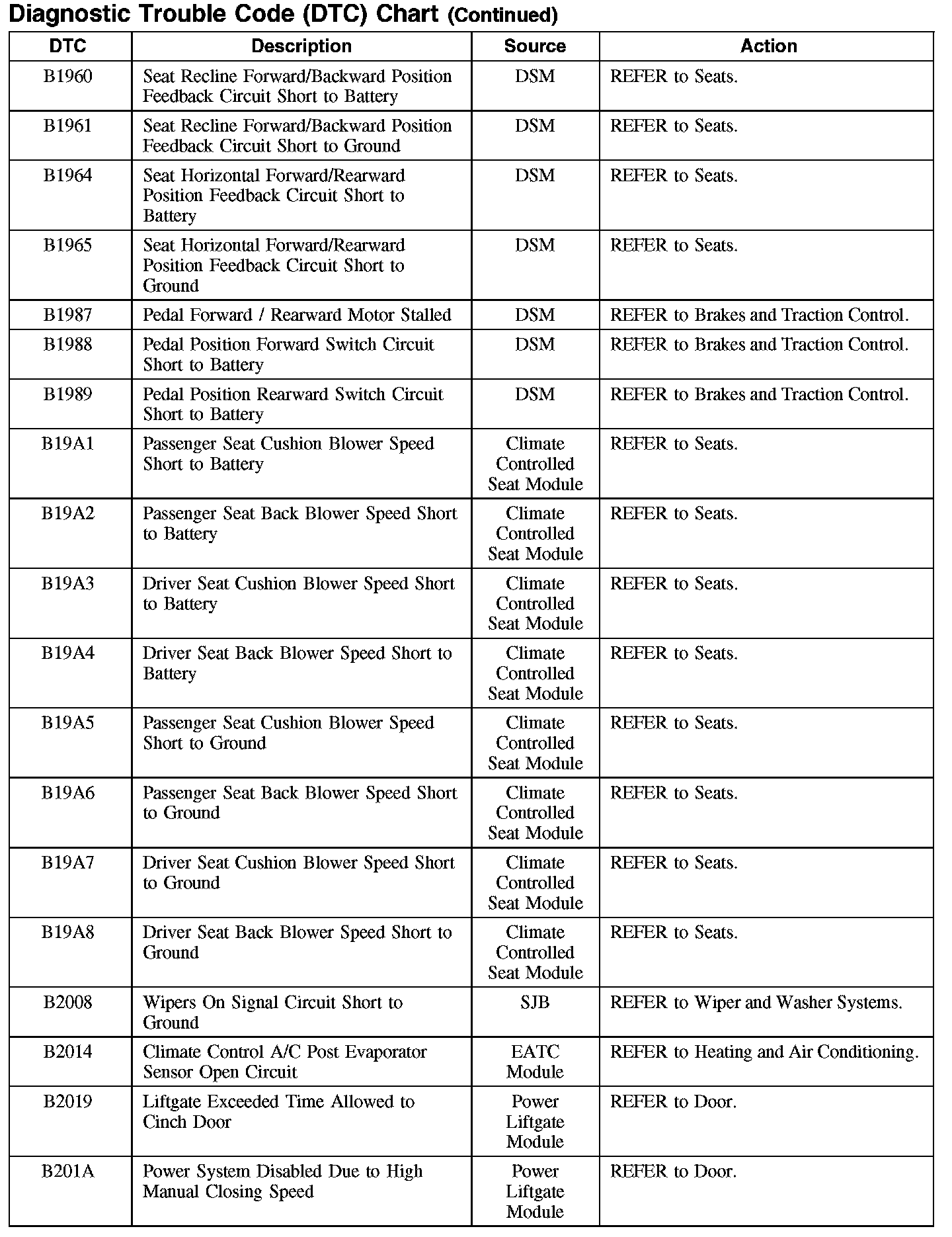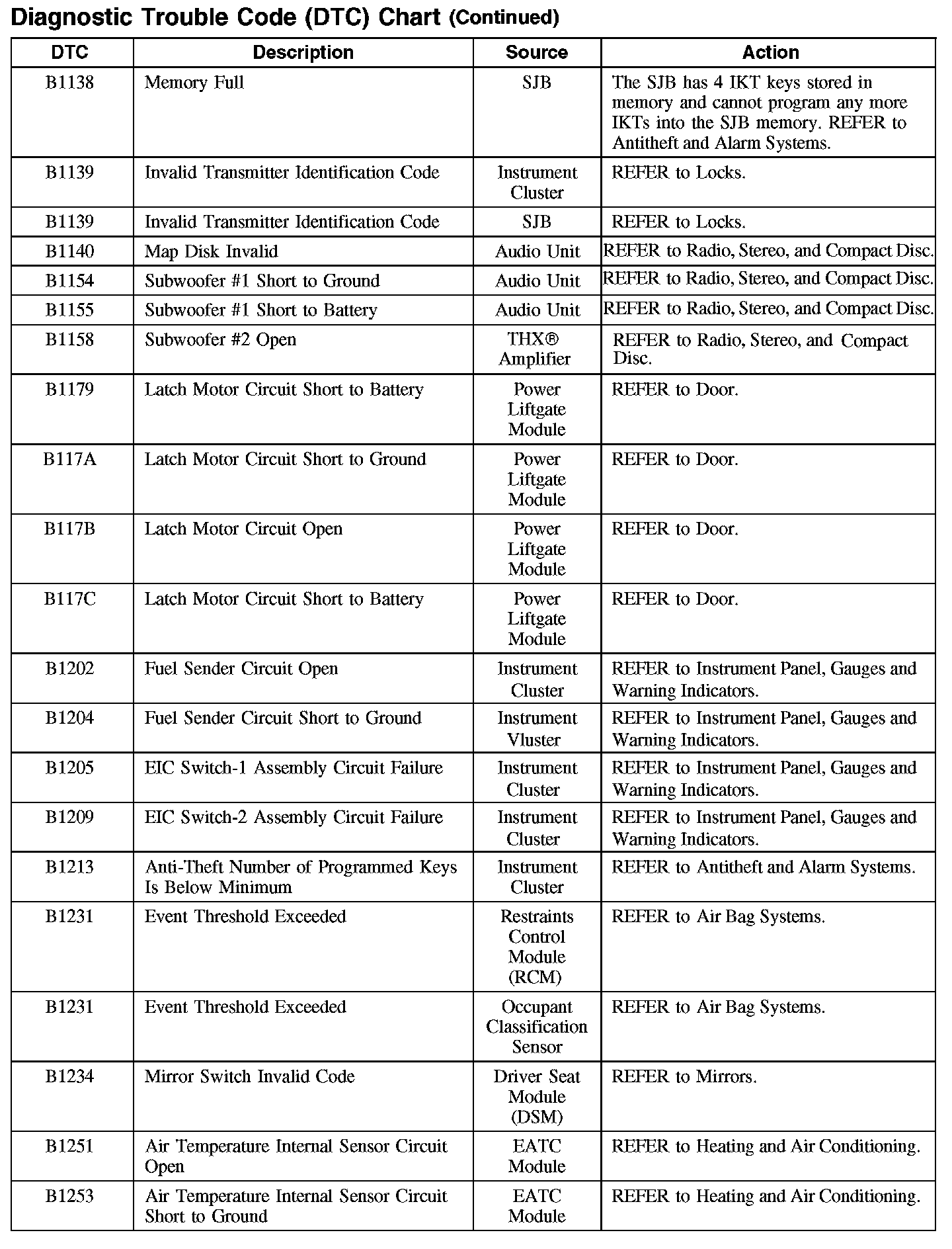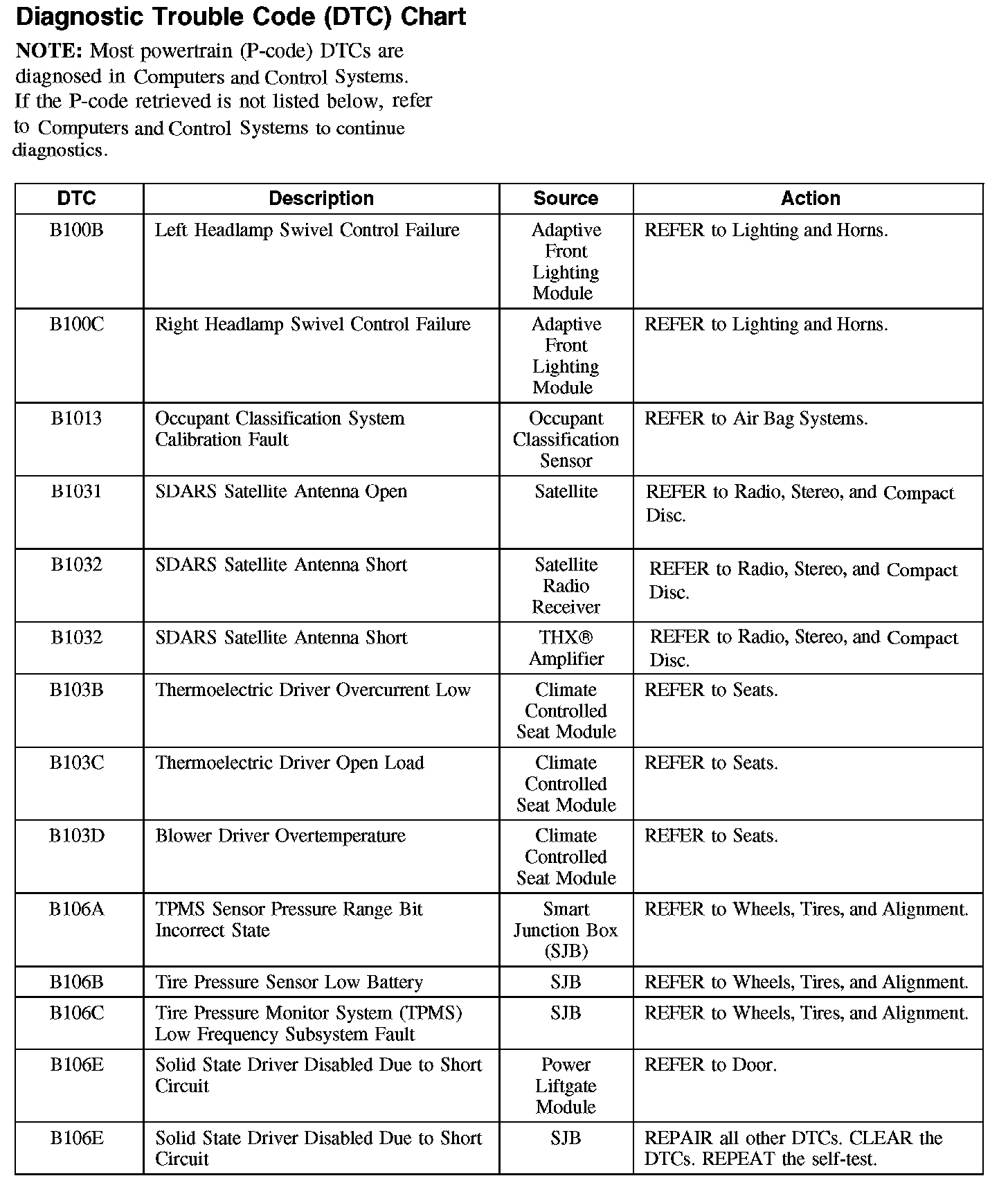 DIAGNOSTIC TROUBLE CODE (DTC) CHARTB100B-B106E: