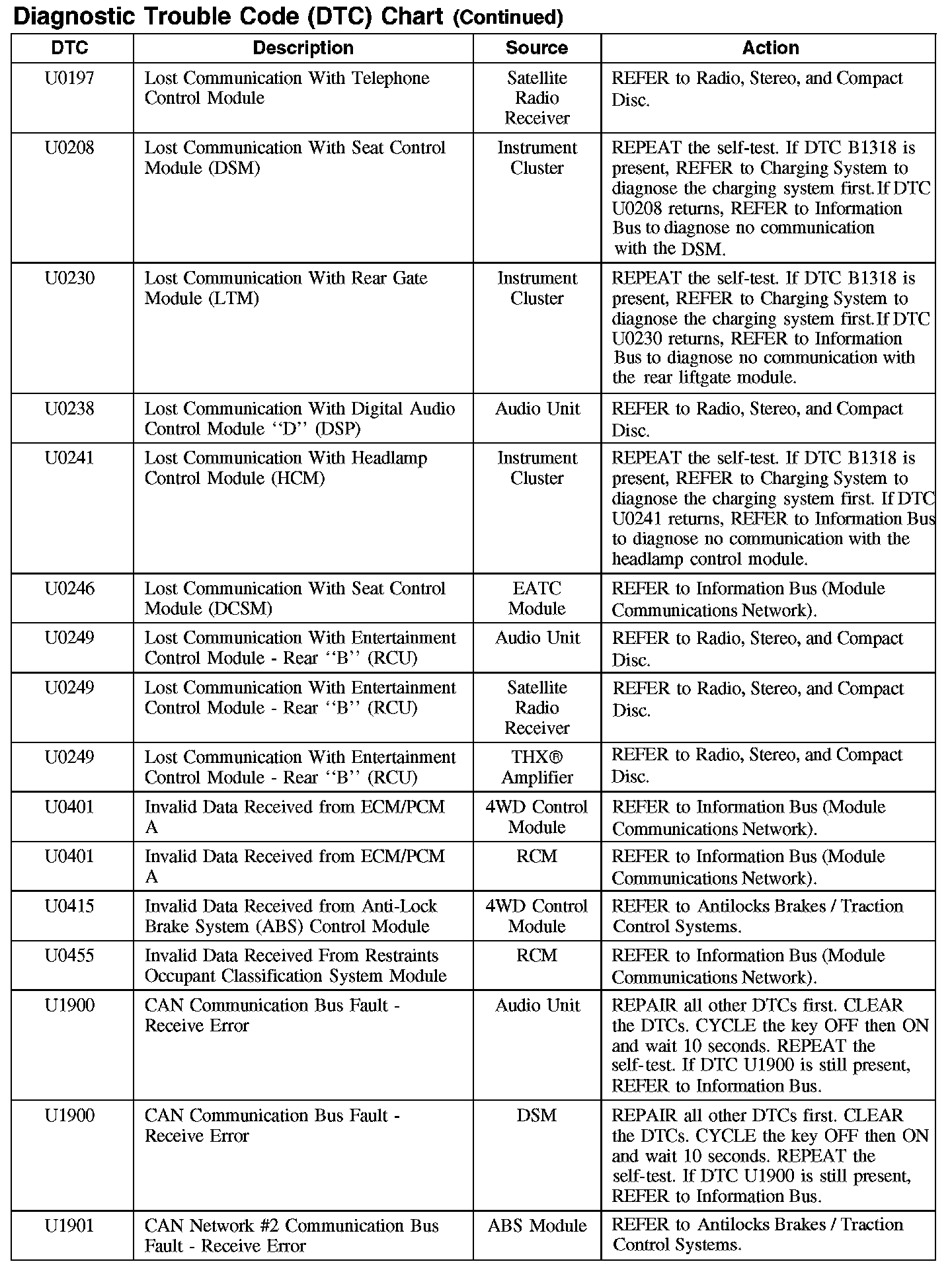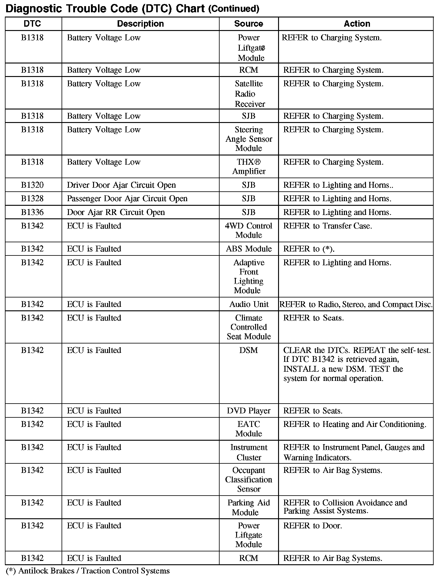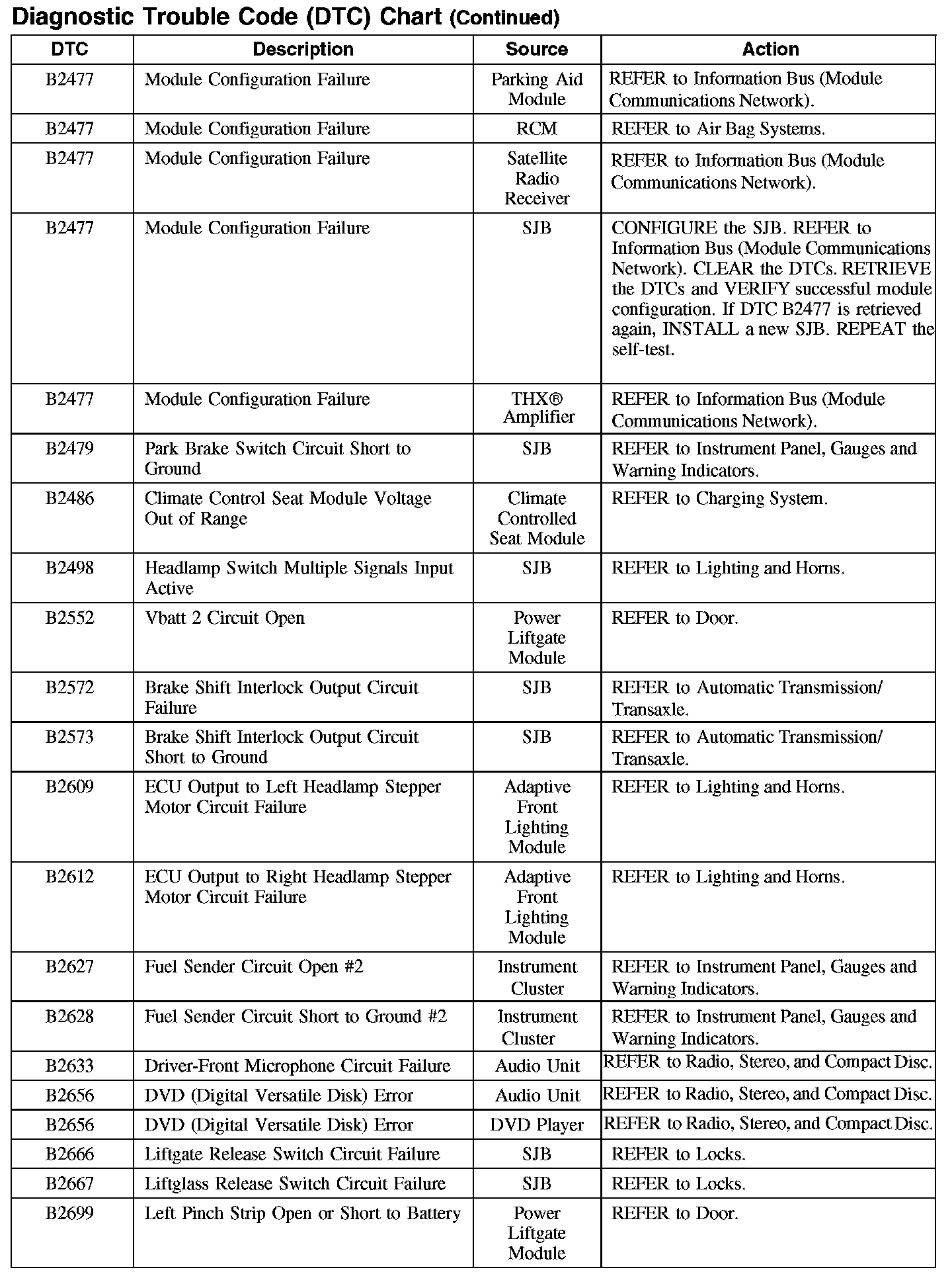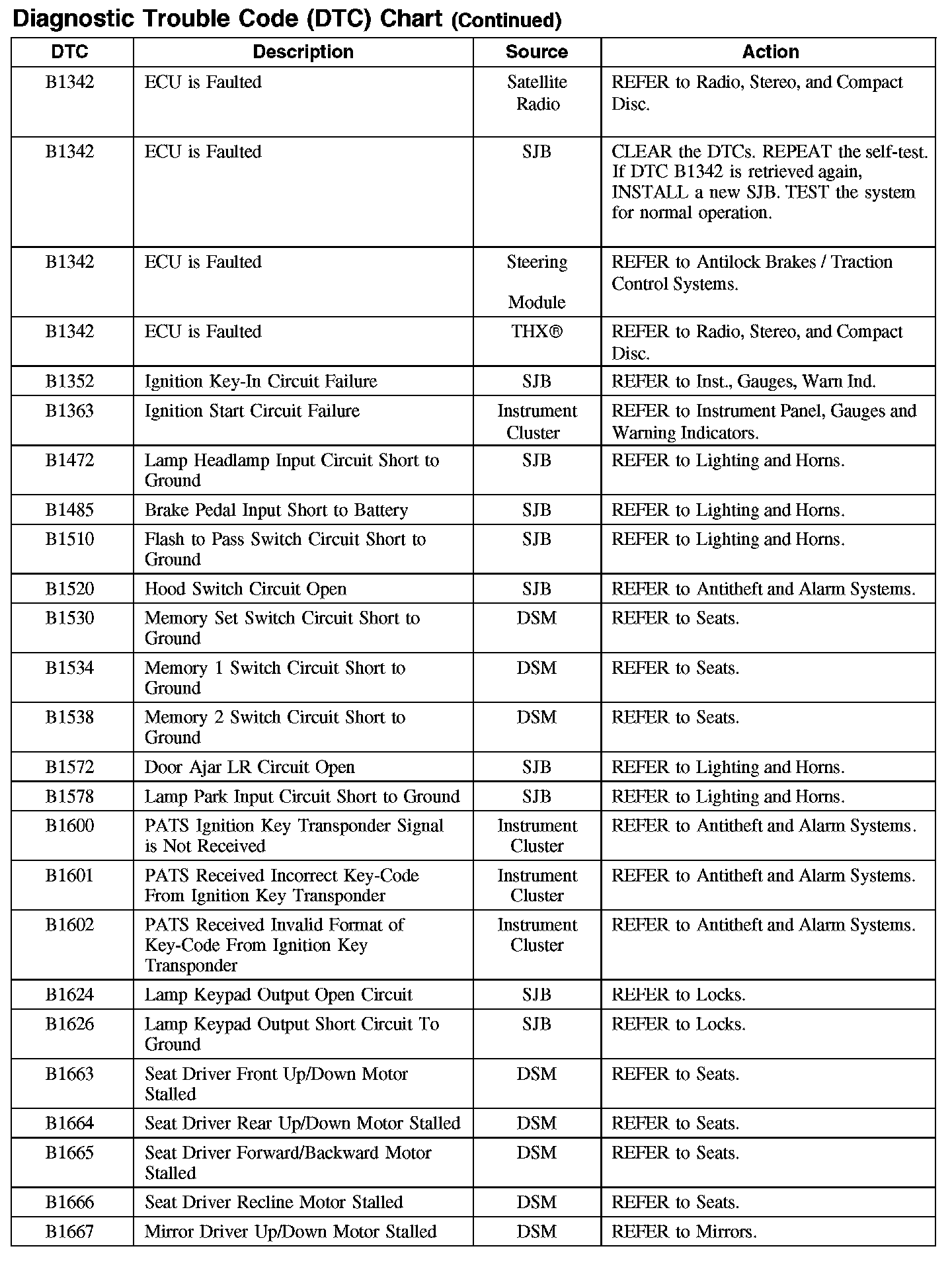 DIAGNOSTIC TROUBLE CODE (DTC) CHARTB100B-B106E: