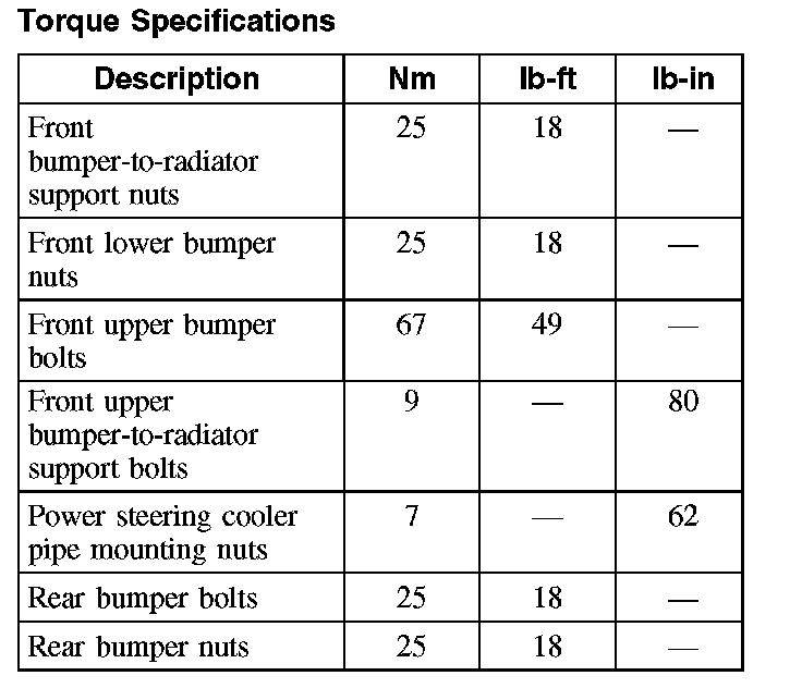 Torque Specifications: