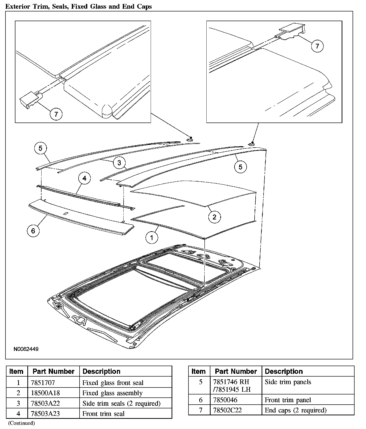 ROOF OPENING PANEL - EXPLODED VIEWExterior Trim, Seals, Fixed Glass And End Caps: