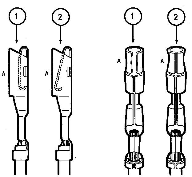 Any probe entering the terminal may enlarge the contact spring opening creating an intermittent signal. Insert the correct mating terminal (Location A) from the service kit and feel for a loose fit.