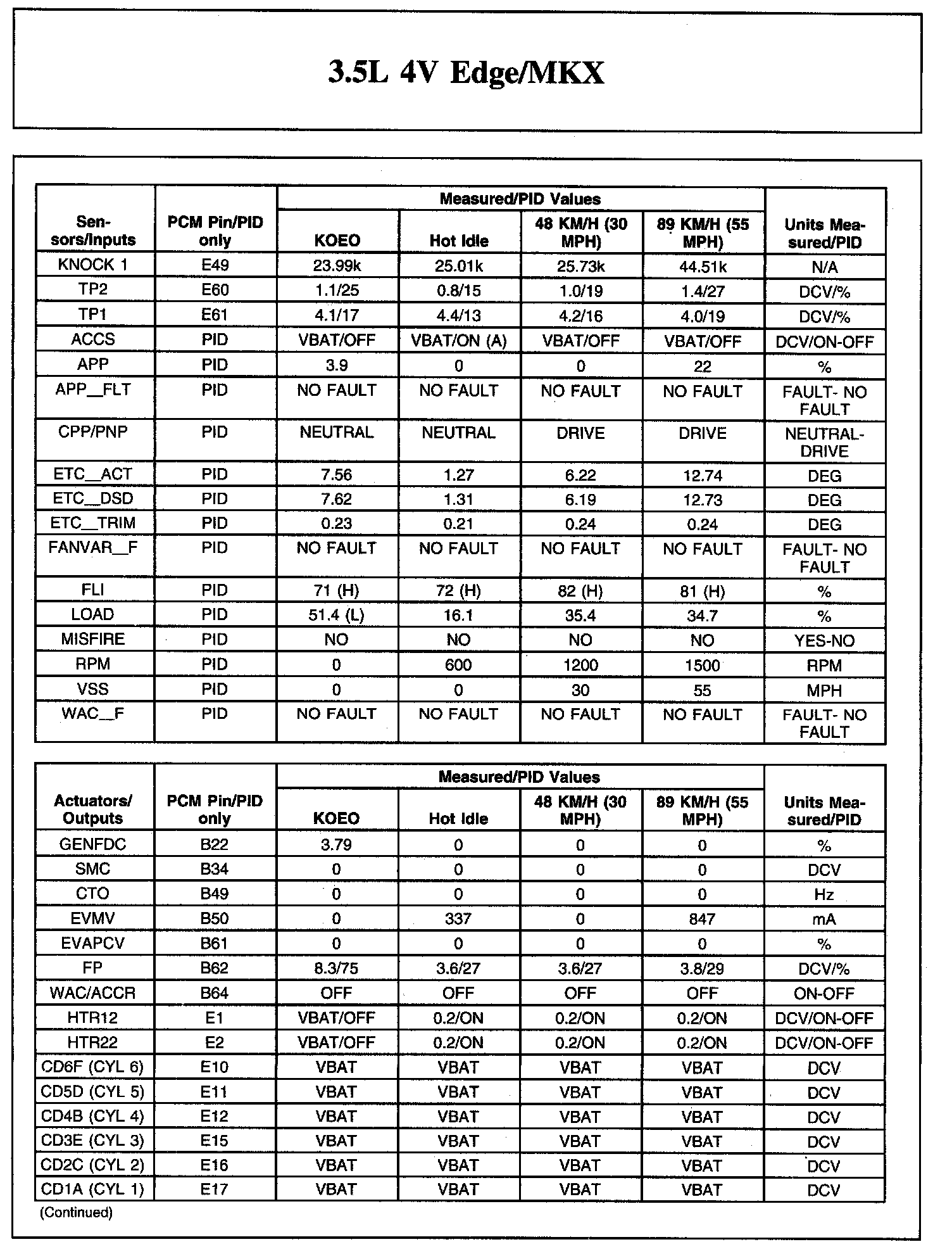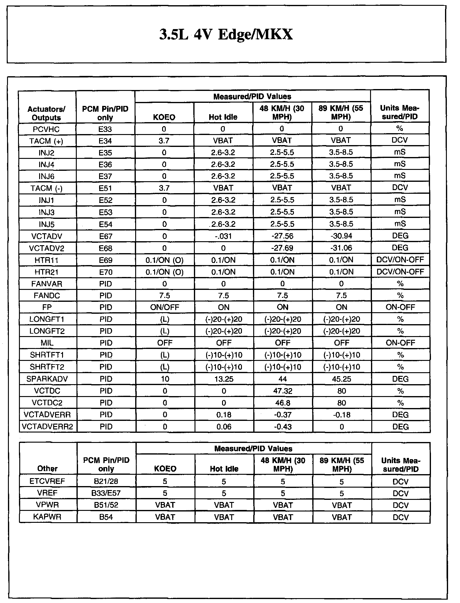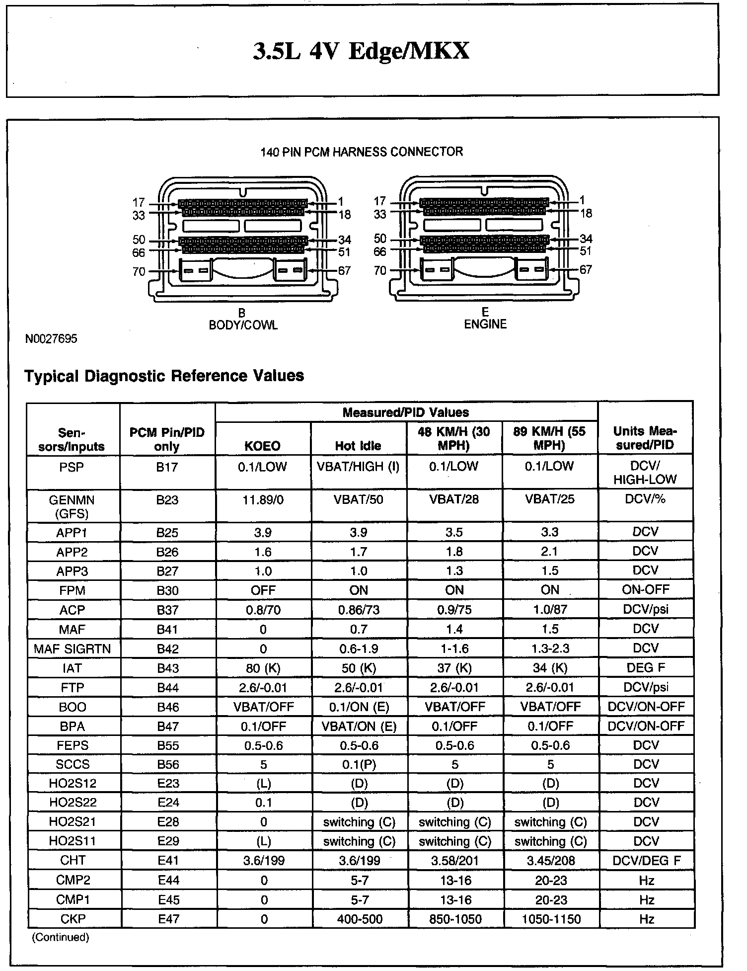 Home >> Ford >> 2007 >> Edge AWD V6-3.5L >> Repair and Diagnosis >> Powertrain Management >> Computers and Control Systems >> Testing and Inspection >> Scan Tool Testing and Procedures >> Typical Diagnostic Reference Values