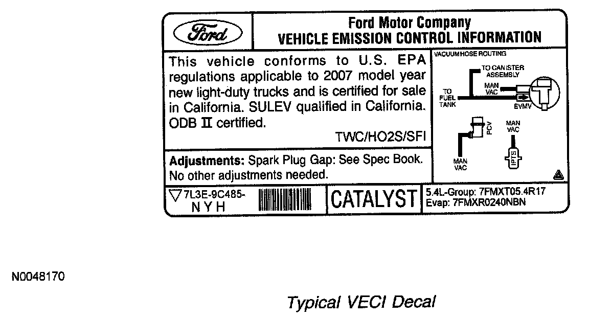 VEHICLE EMISSION CONTROL INFORMATION (VECI)VECI Decal