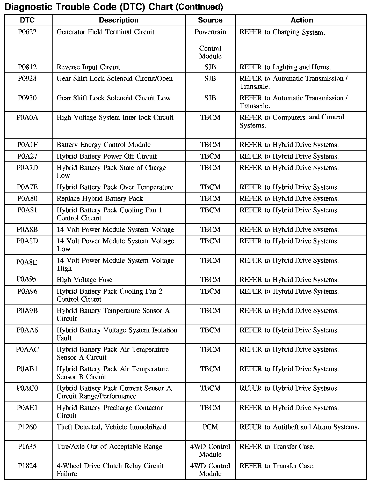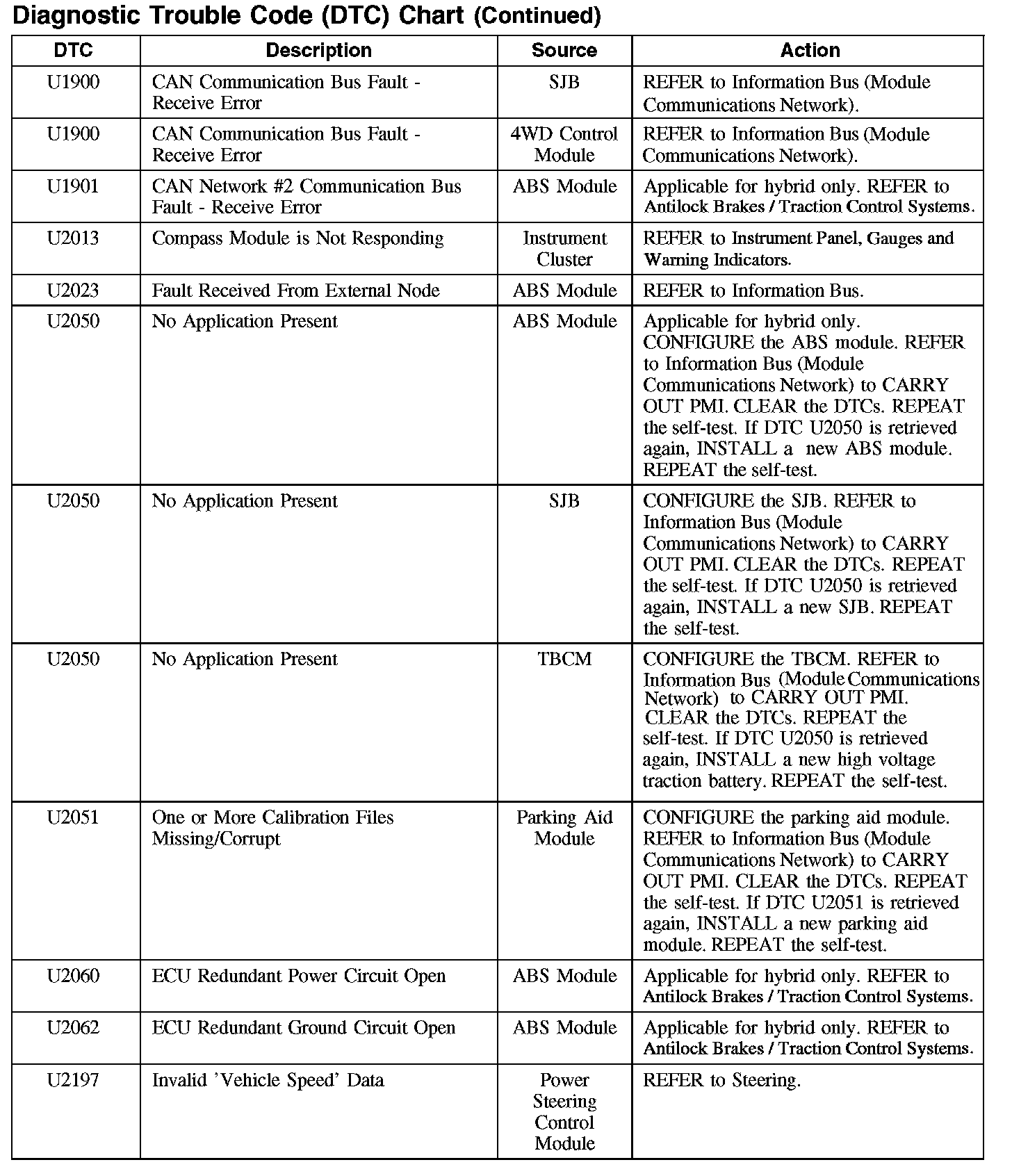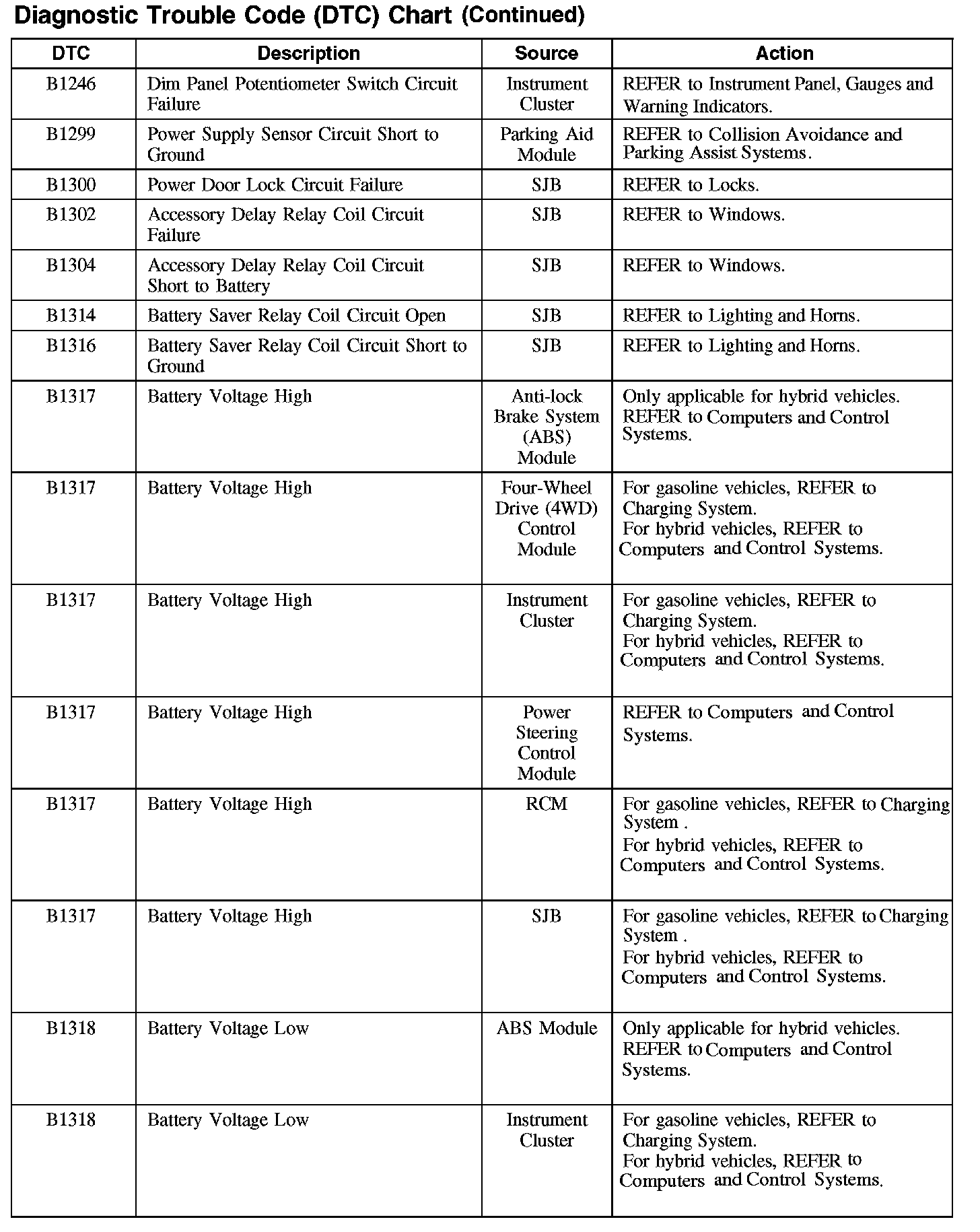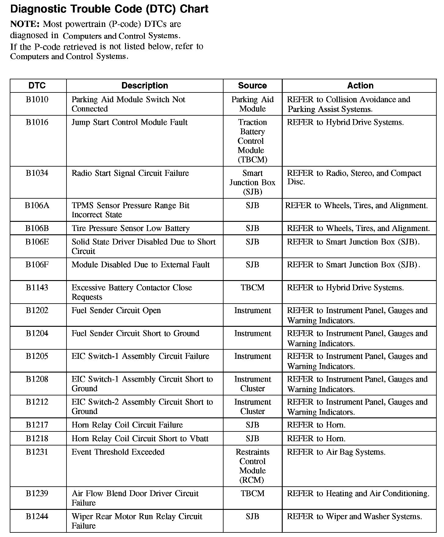 DIAGNOSTIC TROUBLE CODE (DTC) CHARTB1010-B1244: