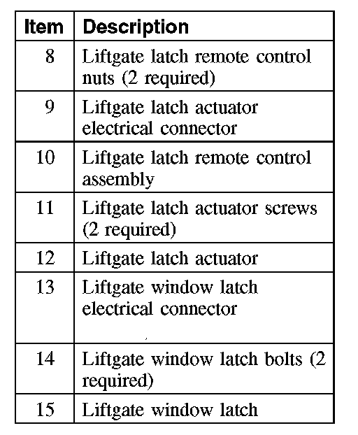LIFTGATE HANDLE, LOCK AND LATCH - EXPLODED VIEW