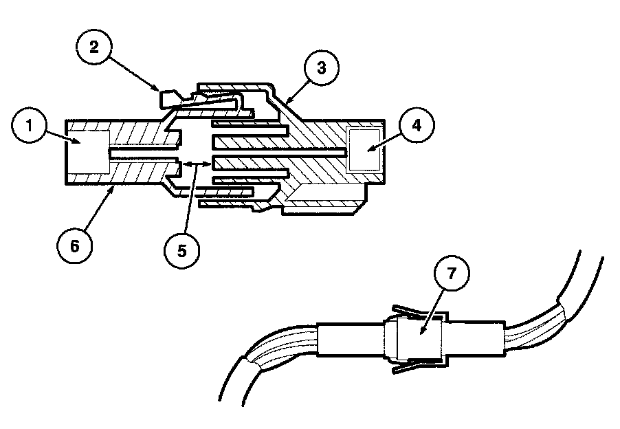 Any probe entering the terminal may enlarge the contact spring opening creating an intermittent signal. Insert the correct mating terminal (Location A) from the service kit and feel for a loose fit.